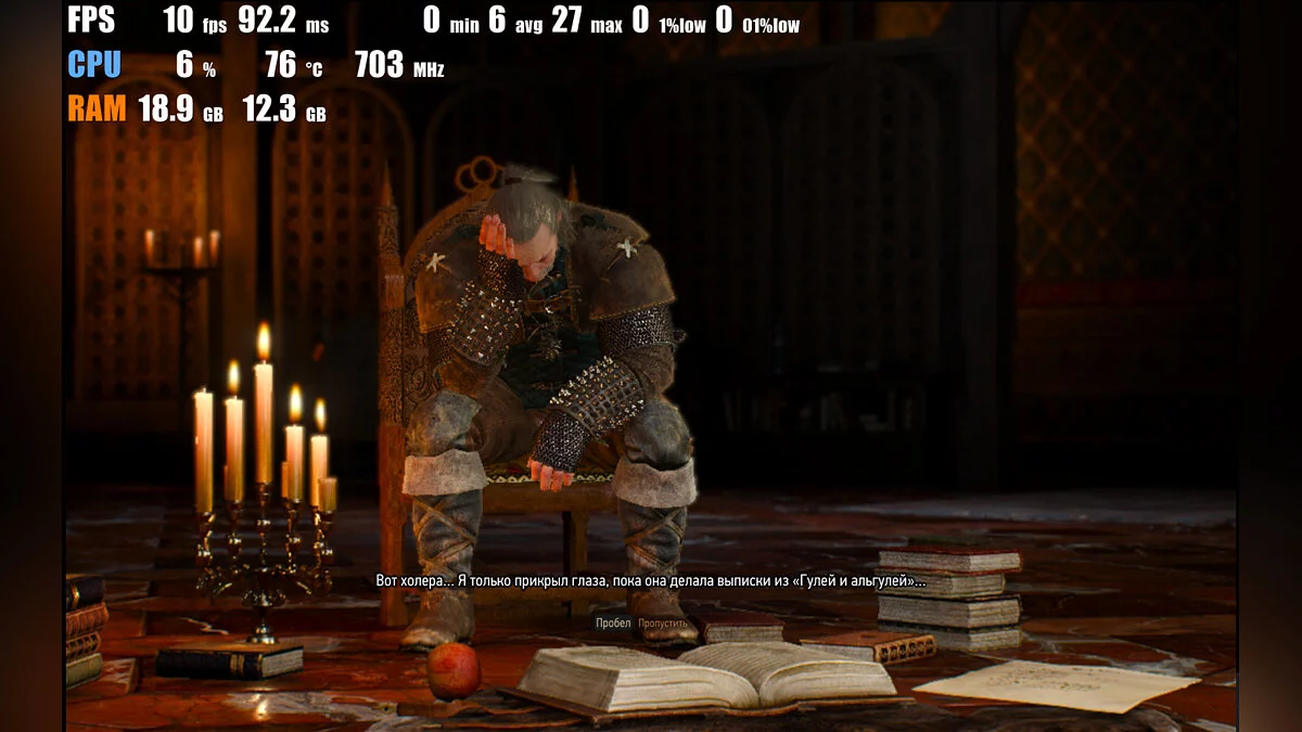 The Witcher 3. 8-10 FPS — приключения в фэнтезийном мире едва ли возможны с такими показателями. При этом все визуальные настройки были скинуты до минимальных значений. Прости, Геральт, но этот ноутбук не рассчитан на проекты вроде «Ведьмака».