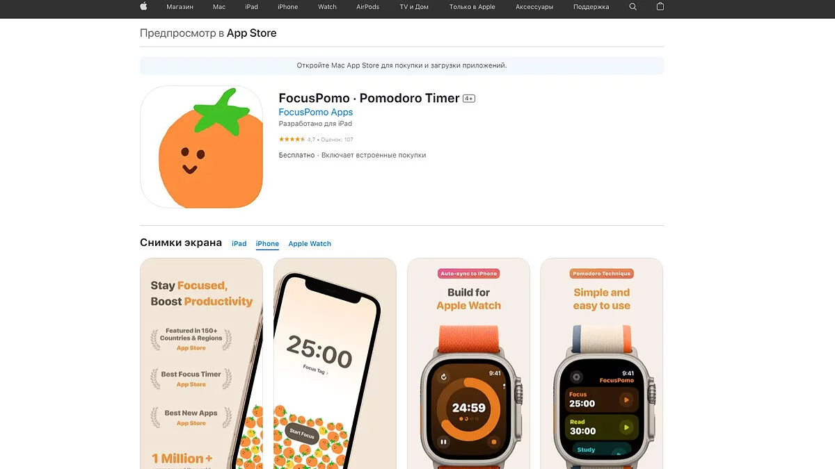 Один из лучших тайм-менеджеров для iOS по версии пользователей AppStore. С ним вы сможете сфокусироваться на любой сложной задаче, настроить собственный график работы и просто воспитать в себе усидчивость. Приложение работает как с iPhone и iPad, так и с Apple Watch, так что ваш личный тренер фокусировки будет рядом с вами все время.
