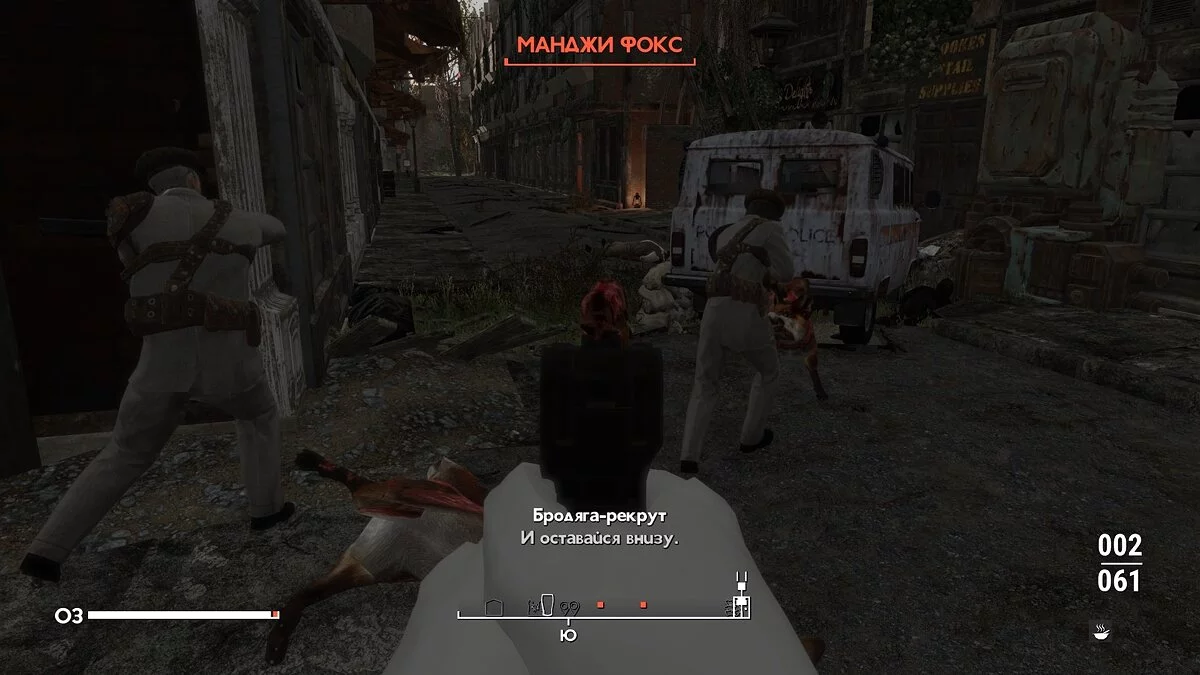 Смерть от двух укусов божьей коровки или с одного случайного попадания турели — обычное явление в Fallout: London. Мы проходили модификацию на средней сложности, но по ощущениям она в разы жестче, чем режим «выживание» в четвертой части. Первые десять часов пришлось страдать и терпеть унижения от всех, кто умеет кусать и стрелять. Стимуляторы «выдают лишь по праздникам», поэтому восстанавливать здоровье пришлось всем, что умеет переваривать желудок. Через три часа после начала приключения у героя выработались зависимости от собачьих консервов, табака и зараженного радиацией джанкфуда. Столкнувшись с первым лагерем косплееров королевского флота (Jack Tar), нам пришлось дополнительно закидываться веществами, чтобы сбить дебаффы от уже имеющихся зависимостей, взять в руки меч и, сломя голову, бежать на вооруженных огнестрелом врагов. Данная ситуация прекрасно олицетворяет фирменное безумие Fallout в лондонском сеттинге.
