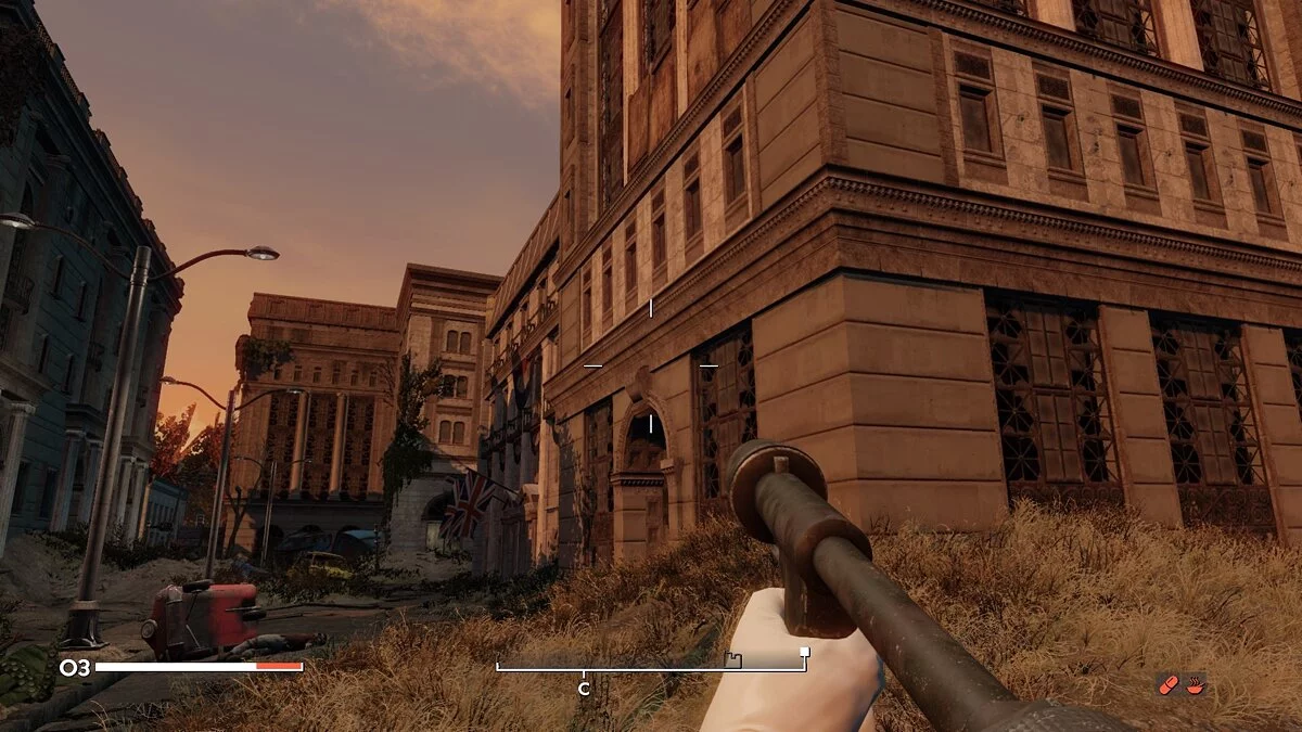 Местный дизайн окружения прекрасно работает на атмосферу постъядерного Лондона. Каждый дом, закоулок и паб отдают британским колоритом. Конечно, с растительностью разработчики явно переборщили, но болота и непроходимые топи рядом с берегами Темзы выглядят вполне естественно. К слову, не стоит переживать, что серое небо и слякоть будут в игре на постоянной основе. Местный туман настолько густой, что в нем можно запросто потеряться. Да, осадки в Fallout: London случаются намного чаще, чем в «четверке», но хорошая погода в модификации отнюдь не редкость. Цветовая гамма практически полностью перекочевала из оригинала. Все локации получись очень яркими и сочными. Из-за обильной растительности мод больше походит на The Last of Us, чем на классическую Fallout. К слову, разработчики даже вставили несколько отсылок к игре Sony.