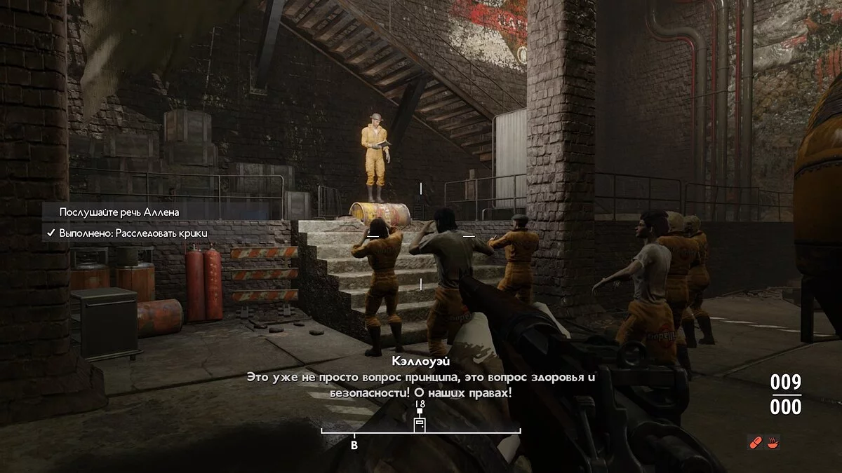 Но если вы подумали, что проблемы с дисбалансом решатся сами собой по ходу роста прогрессии персонажа, то нет. Fallout: London будет хардкорной до самого финала. Если у противника есть в арсенале гранаты, то он будет вас буквально «закармливать» ими. Патроны с трупов выпадают в штучном количестве. Перки, о которых мы расскажем в отдельном блоке, не дают особого преимущества. Боссов можно прикончить только благодаря багам и непродуманной геометрии уровня. Очки за рост уровня нужно обязательно вкладывать в показатель «Силы», так как без нее пользы от мечей и топоров будет меньше, чем от револьвера с пустым барабаном. А на количество врагов разработчики не поскупились. Финальный акт сюжетной кампании напомнил осаду Сталинграда из Call of Duty, где нам дают винтовку без патронов и выпускают сражаться с пулеметчиками.