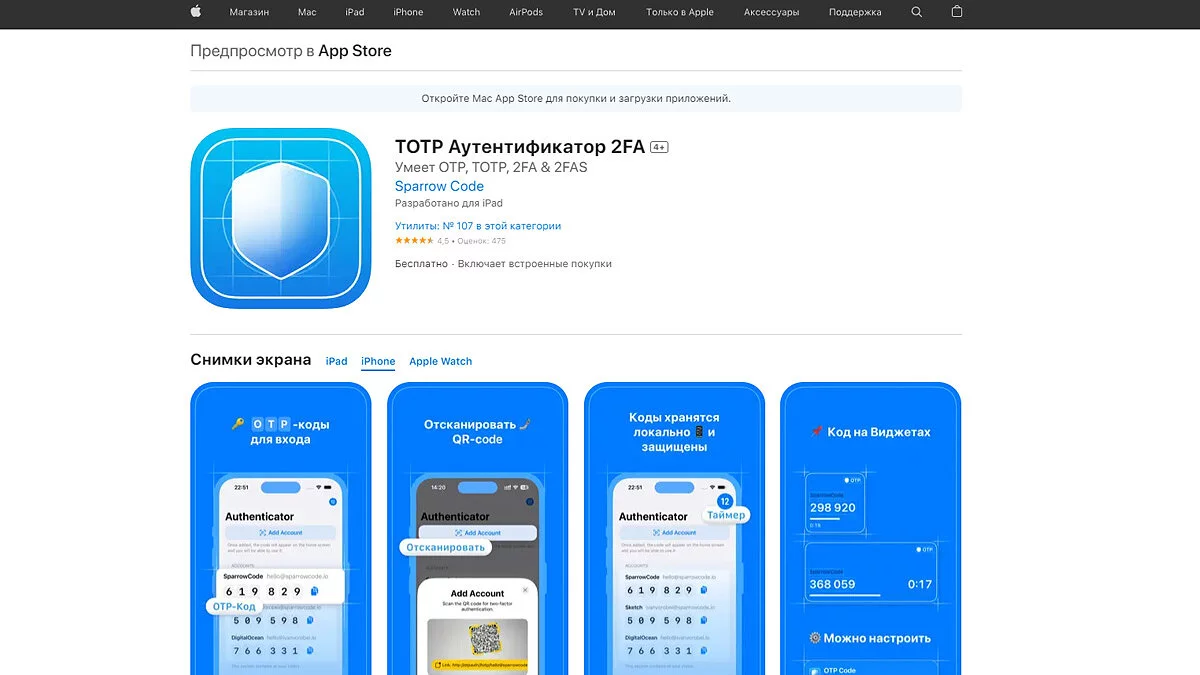 Ввиду частых взломов и утечек будет не лишним настроить доступ к аккаунтам через одноразовый пароль. Данное приложение позволит посещать странички в соцсетях и почту через сгенерированный код, который действует только для однократного сеанса. Все токены для генерации хранятся только на вашем устройстве, а программа работает без подключения к интернету, так что можно не опасаться, что вы станете жертвой хакерской атаки.