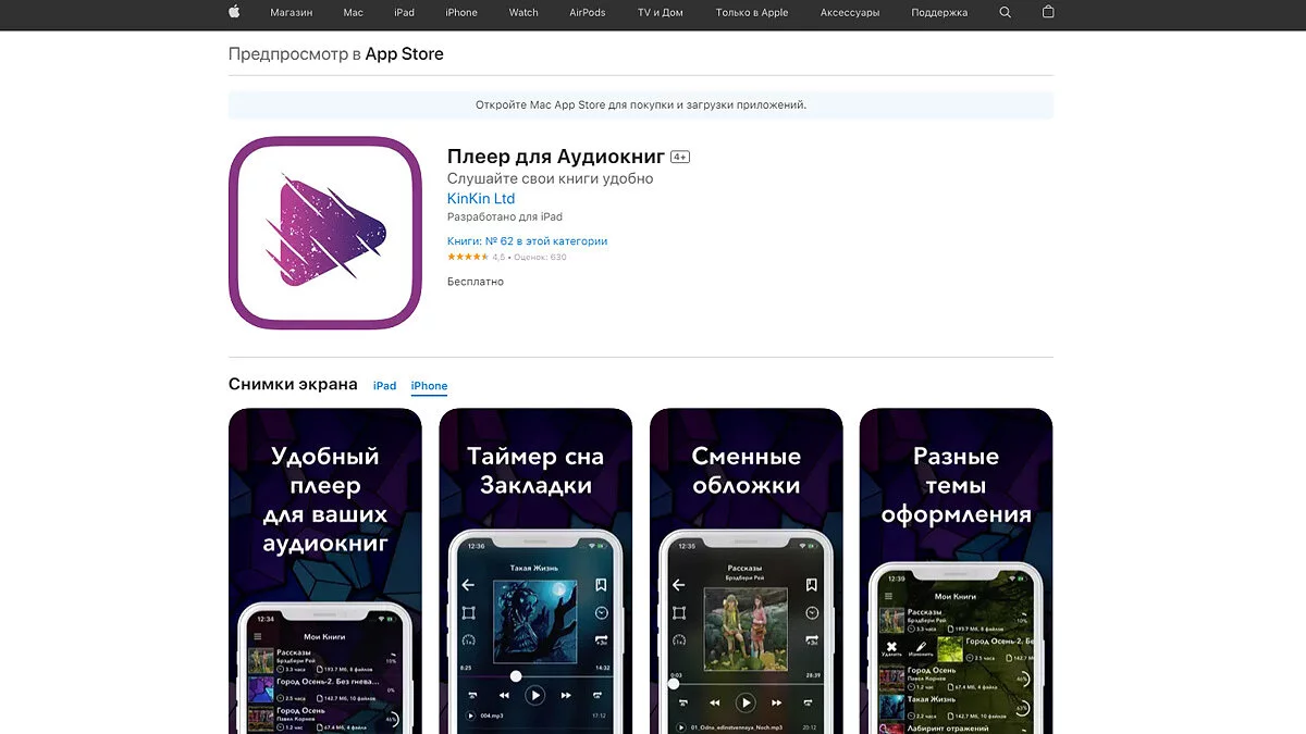 Один из самых удобных бесплатных плееров для любителей аудиокниг по версии пользователей App Store. Приложение позволяет слушать произведения в форматах .mp3 и .m4b без конвертирования и назойливой рекламы. Добавить книги в свою библиотеку можно как через ПК, так и через облачные сервисы вроде iCloud и Google Drive.