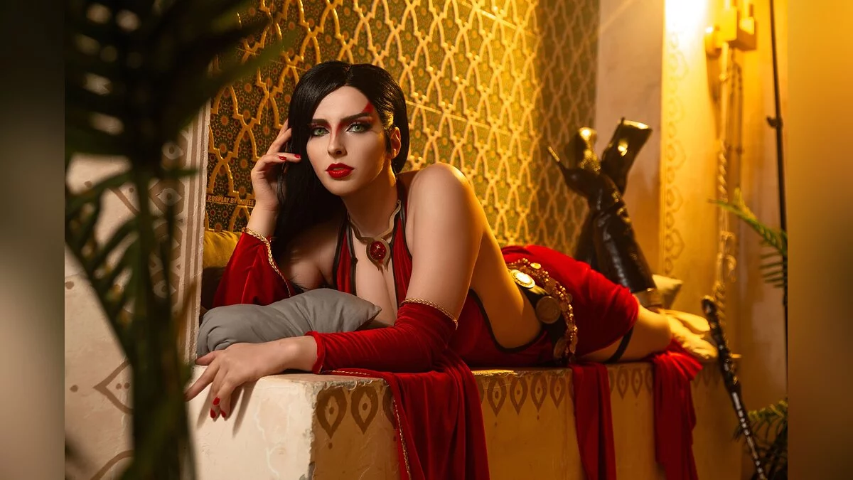 Я познакомилась с серией «Принц Персии» ещё в далёком детстве. Меня особенно впечатлила Warrior Within. Не знаю почему, но мне понравился сюжет с песками времени и перемещениями между разными временными эпохами. И, конечно, мне приглянулась роскошная Кайлина, которая в итоге оказывалась злодейкой. Она зацепила моё сердце. Особенно впечатлило красное платье с золотыми украшениями и глубоким вырезом, а также скорпионий клинок. Чувствовалось, что перед ними сильная и властная императрица. Я рада, что смогла передать её образ.