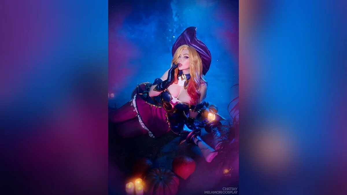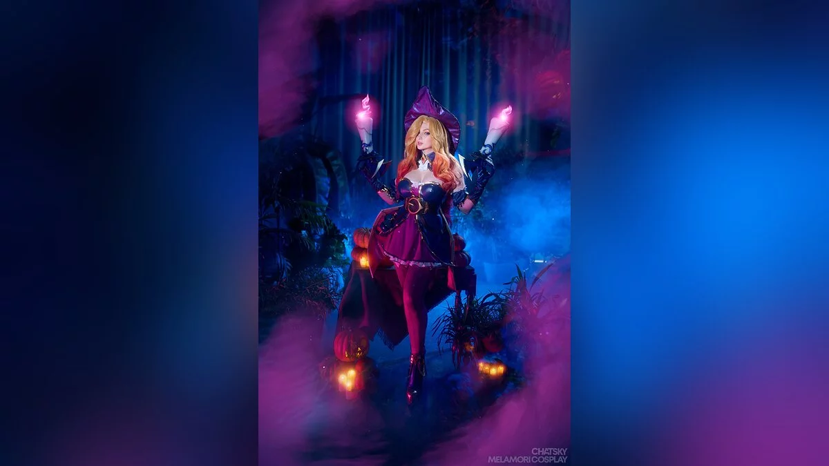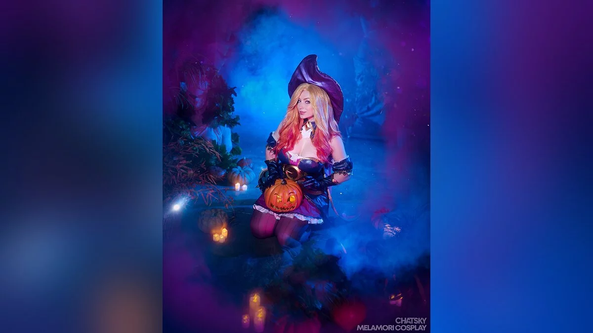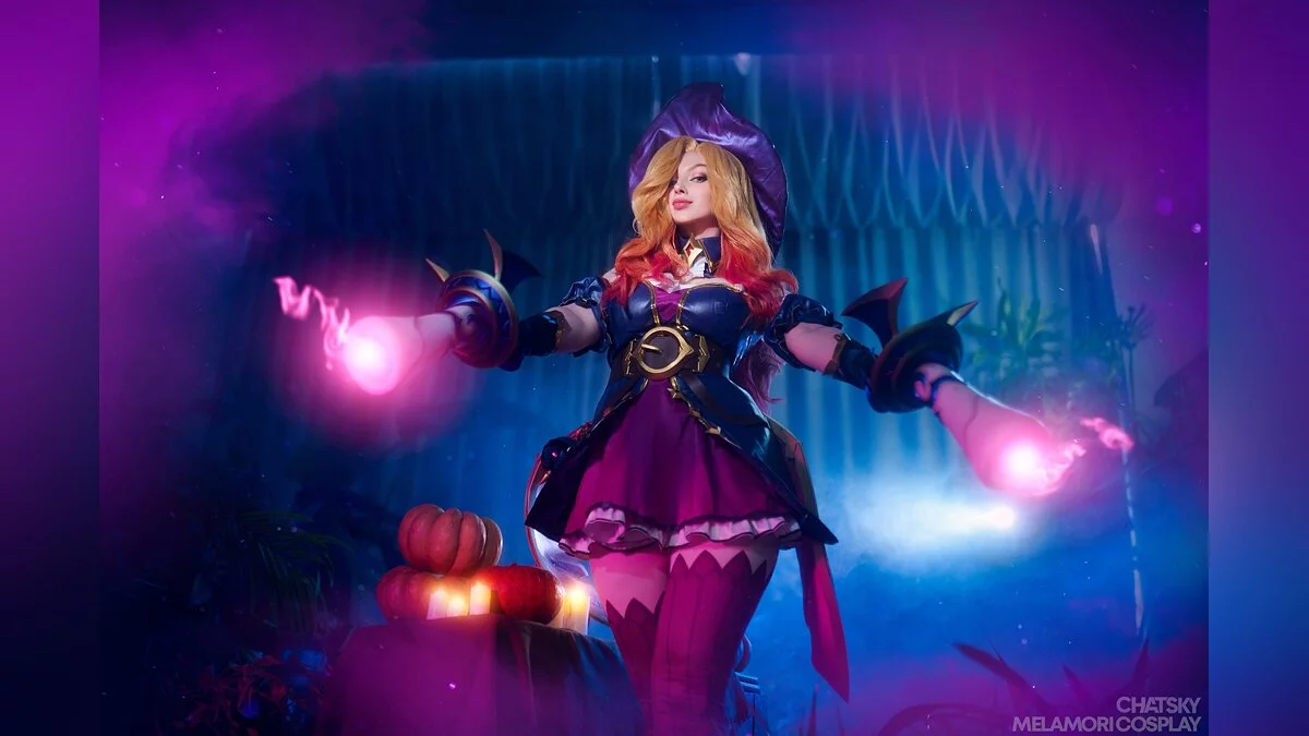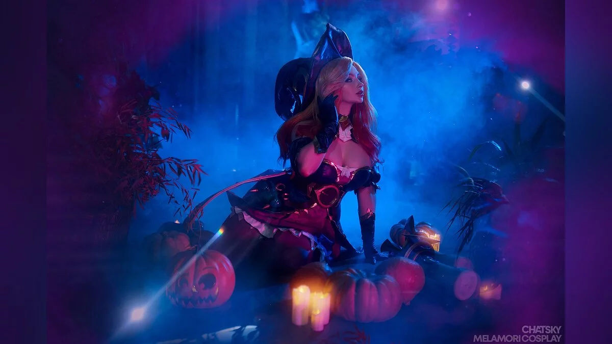 Разработчики мультиплеерных игр часто добавляют в свои проекты праздничные скины. Например, многие героини «Лиги легенд» (League of Legends) получили хэллоуинские облики. Именно так произошло с охотницей за головами Сарой, больше известной как мисс Фортуна. В результате у неё поменялся наряд, а мушкеты превратились в большие свечи. Косплей на эту красавицу сделала Lady Melamori.
