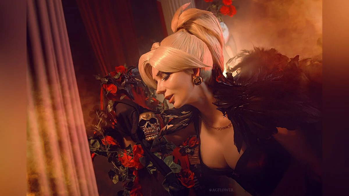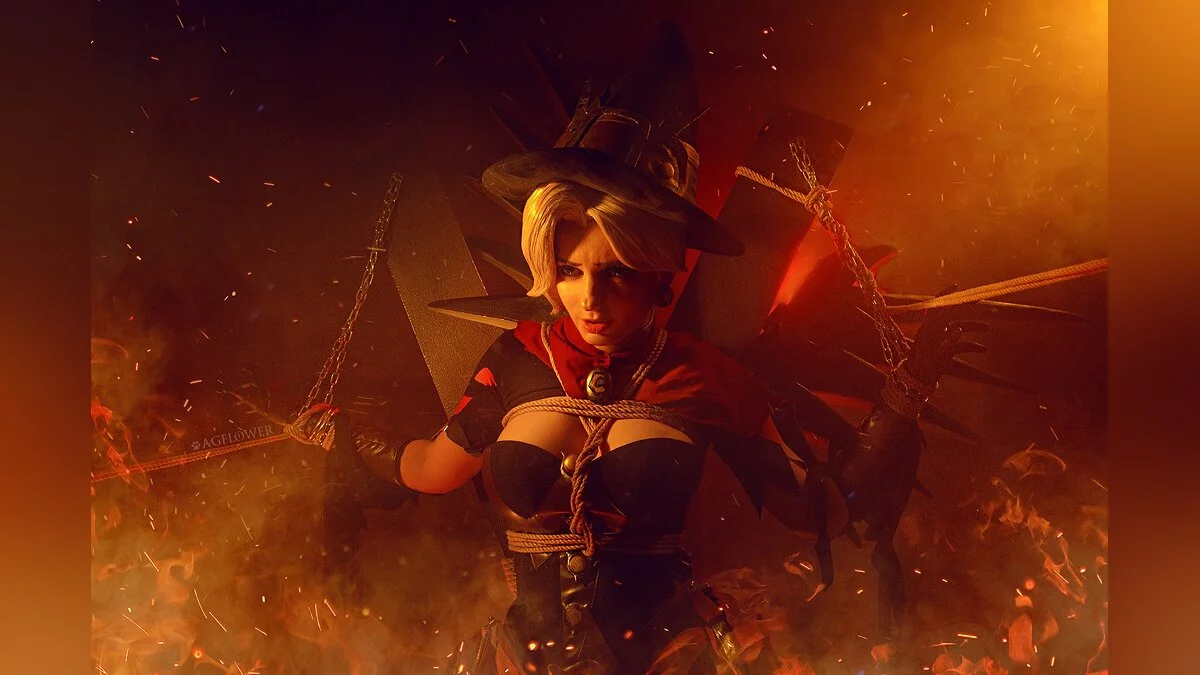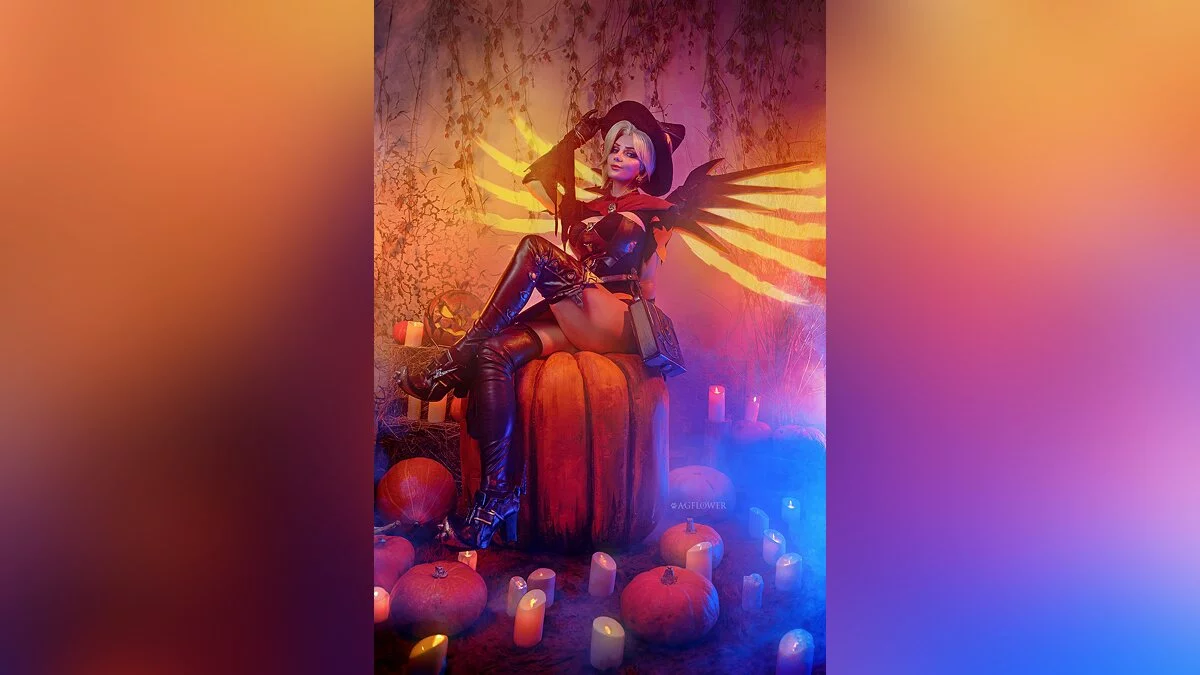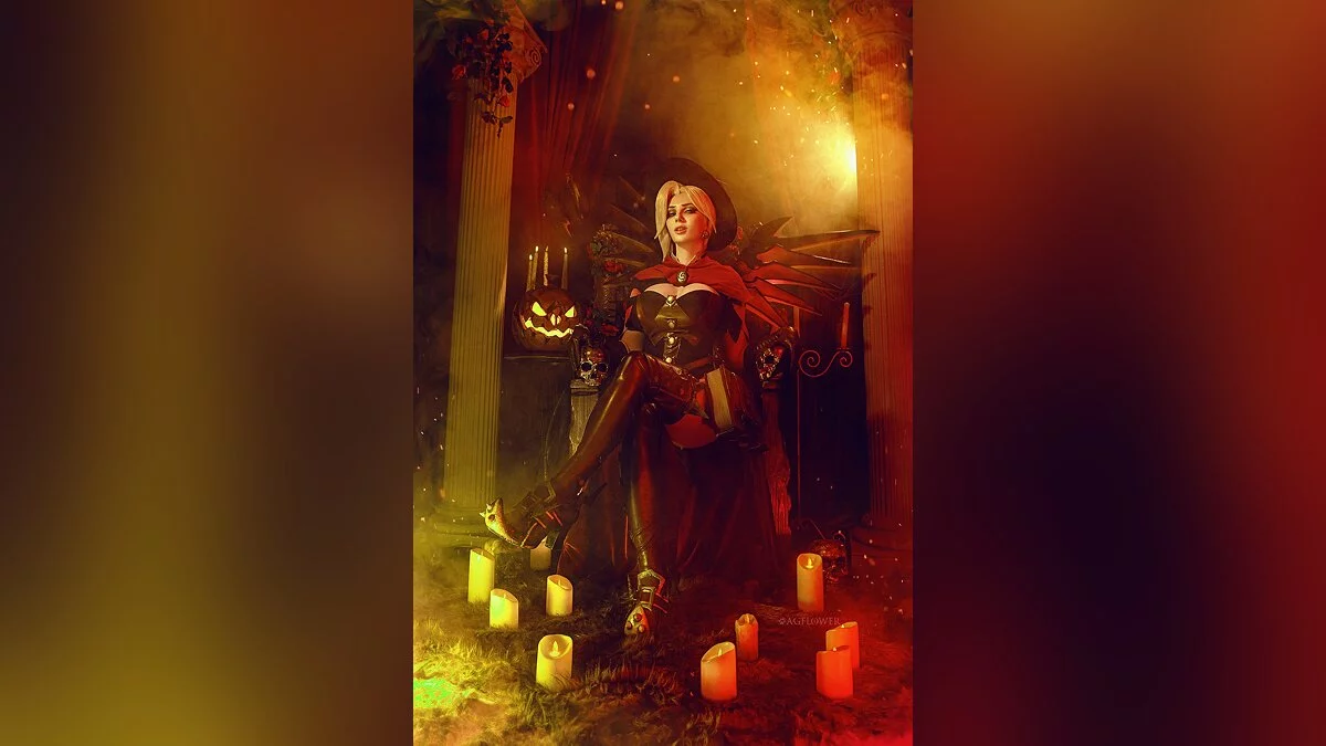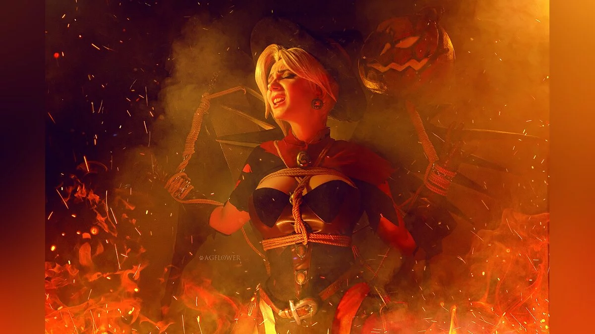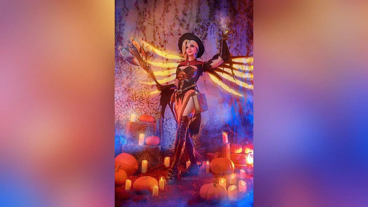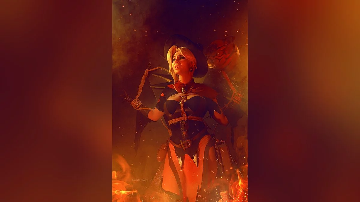 В дилогии Overwatch тоже есть тематические скины для героев и героинь. Один из них превращает Мерси в милую ведьмочку. В таком наряде её целительные способности воспринимаются как чёрная магия, от которой хочется держаться подальше. Этот образ воплотила в жизнь Алёна Сысуева, больше известная как AGFlower.