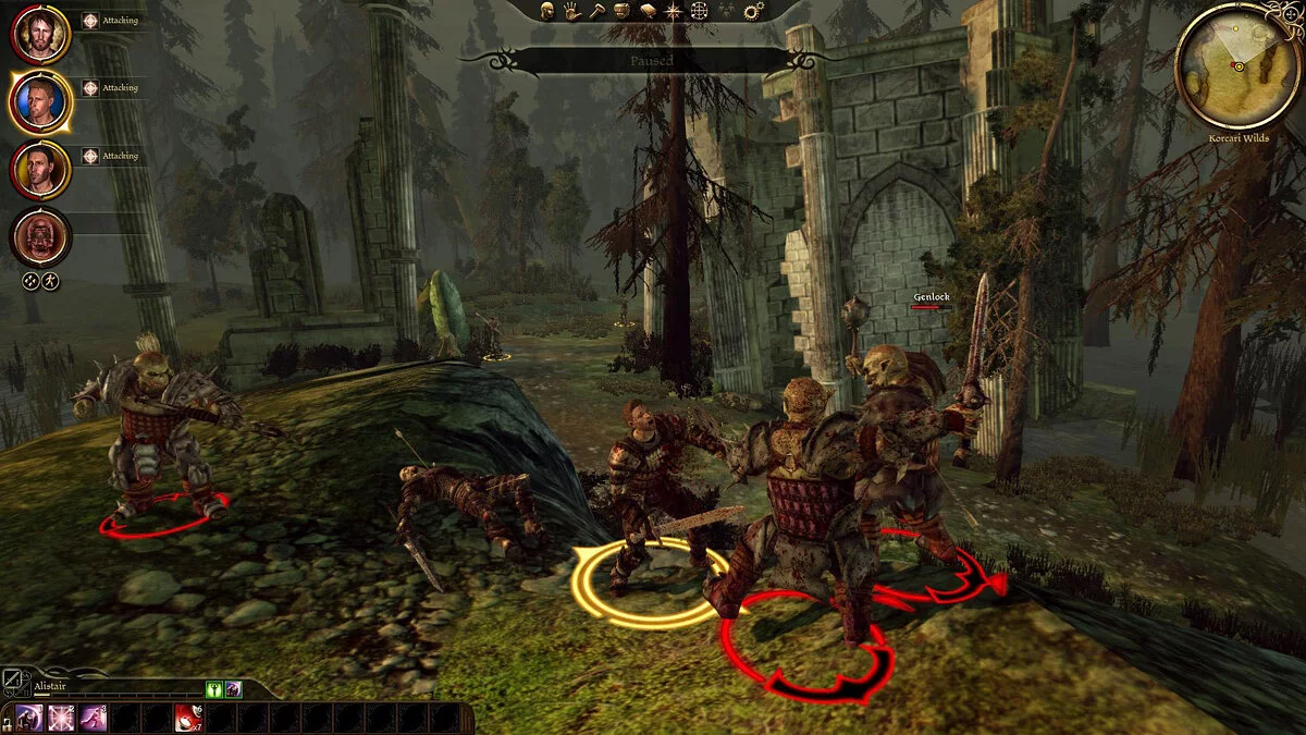 Сражения в Dragon Age происходят в реальном времени. Мы можем управлять сразу четырьмя бойцами отряда, однако переключаться между ними в разгар битвы не слишком удобно. Поэтому в игре есть тактическая пауза, которая позволяет раздать команды сопартийцам или даже выстроить чёткую последовательность действий. Причём если на низком уровне сложности она не нужна, то в хардкорном режиме без неё не обойтись.