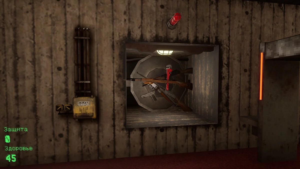 Арсенал прост: разводной ключ, пистолет, автомат, два дробовика, снайперская винтовка и электропушка. Огнестрел отличается, но до стандартов хорошего ганплея Kvark очень далеко. Это, пожалуй, наиболее разочаровывающая часть проекта, ведь все шутеры старой школы предлагали отличный ганплей.