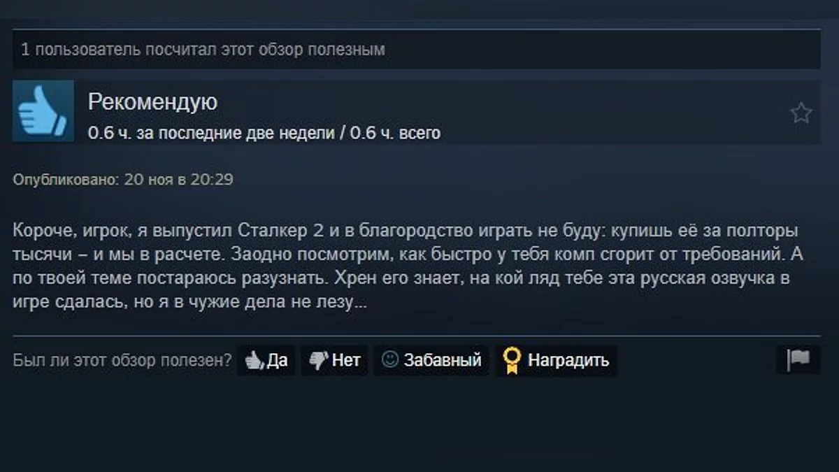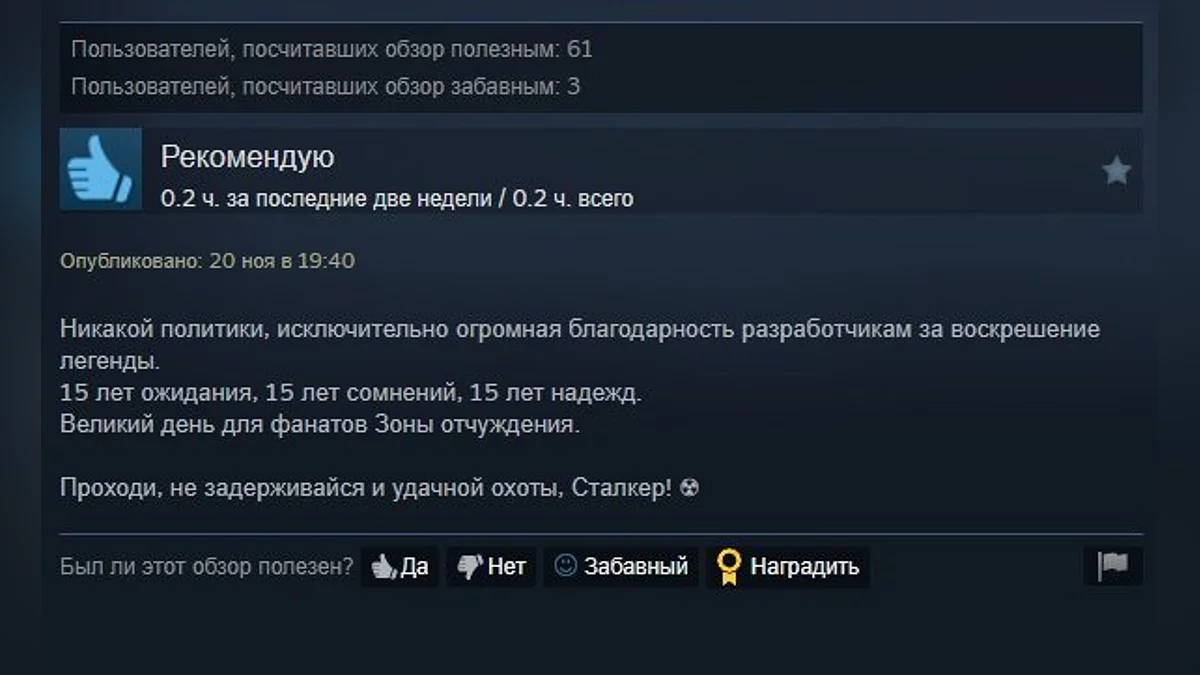 Мнения игроков о S.T.A.L.K.E.R. 2: Heart of Chornobyl