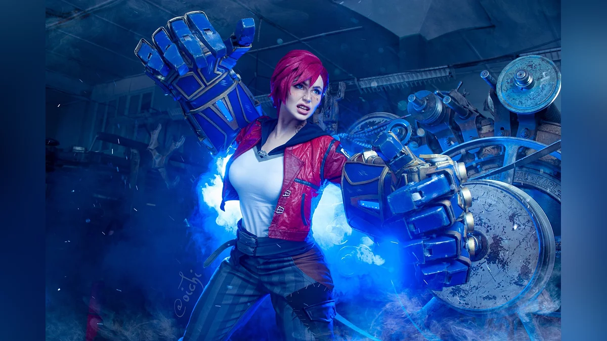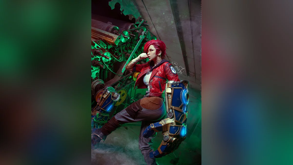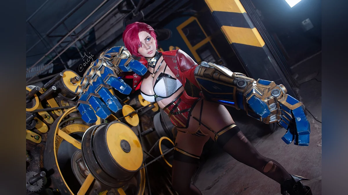 Тему «Лиги легенд» (League of Legends) продолжает Oichi. Она сделала косплей на Вай, которая борется с преступностью при помощи мощных хекстековых перчаток. Это необычное оружие ломает любую броню, поэтому в ближнем бою у врагов Хранительницы Пилтовера просто нет шансов.