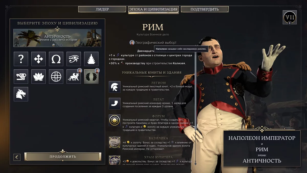 А сами правители больше не привязаны к странам: героя и цивилизацию, которую он будет вести, нужно выбирать отдельно. Непривычно, но интересно. Иногда даже самые странные комбо складываются в «имбу».