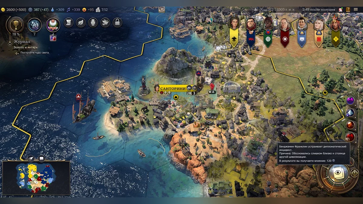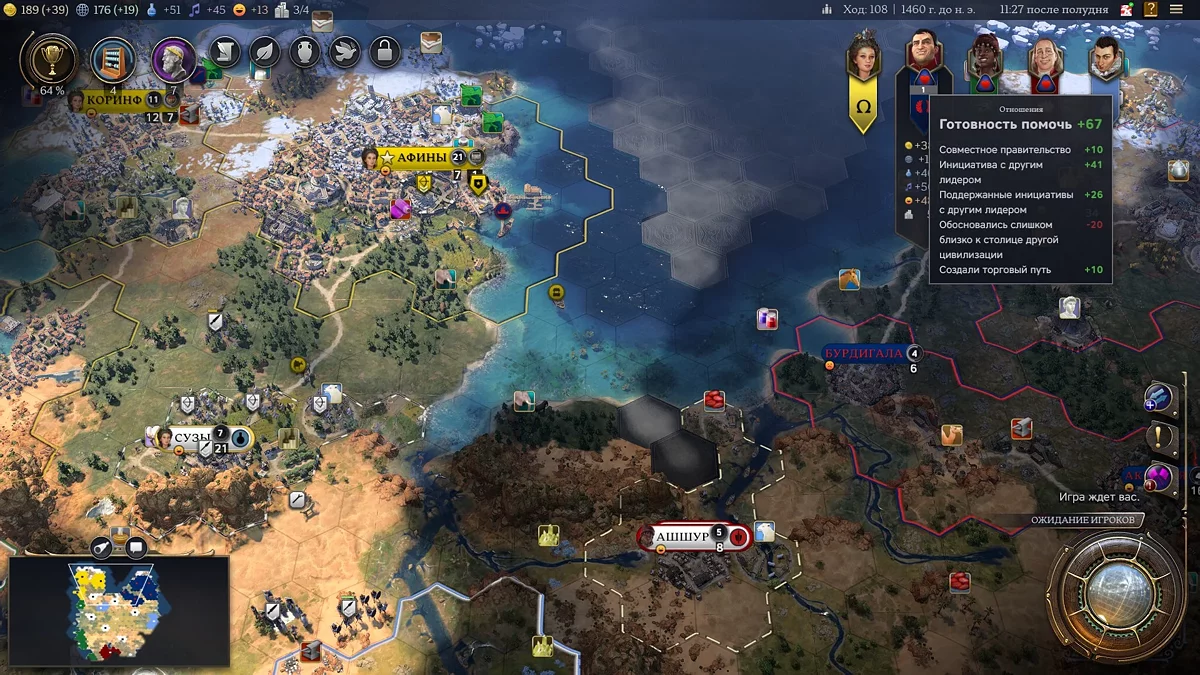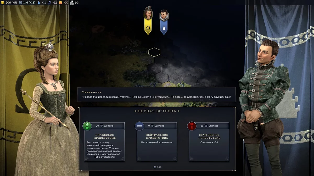 В целом впечатления от переработанной системы поселений и городов-государств скорее положительные. Если повезет, можно довольно быстро взять под свое крыло независимую деревню и получить крайне приятные бонусы. Почему если повезет? Потому что если рано встретить кого-нибудь из соседей, все влияние будет уходить именно на них. Кстати, об этом.