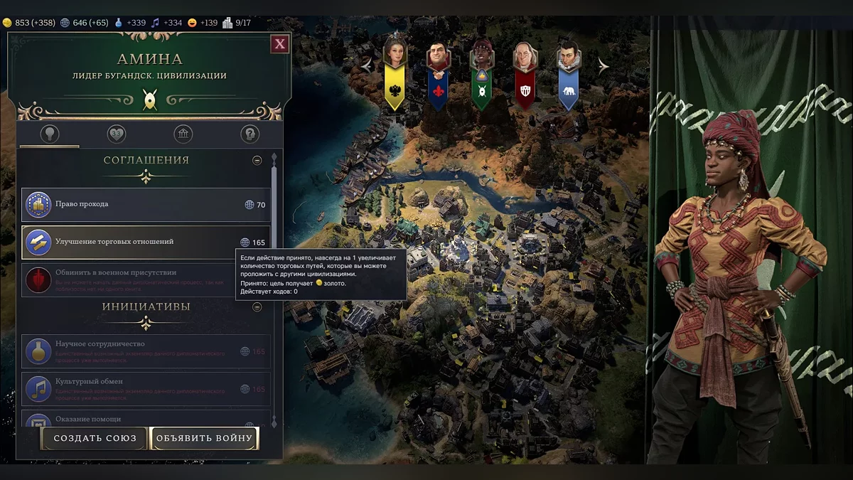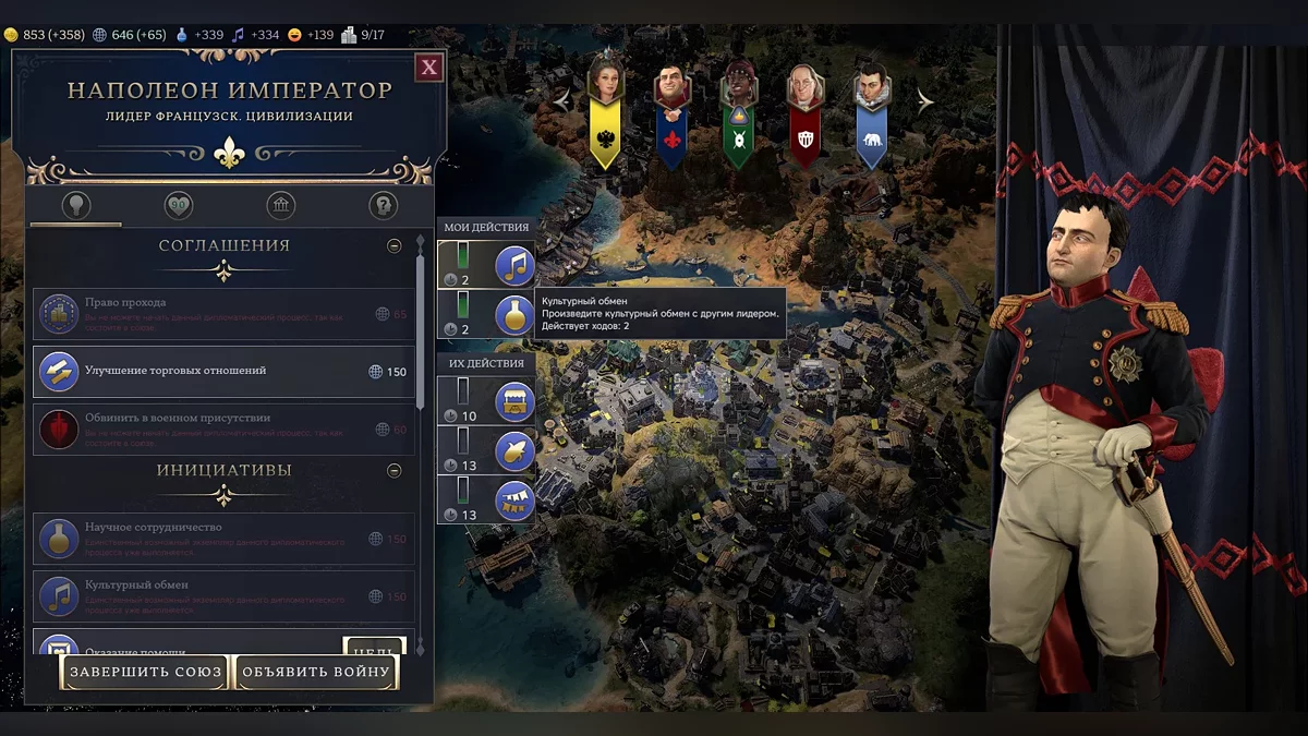 В рамках дипломатии можно не только подписывать союзы, но и различные узкие соглашения, которые будут давать обеим цивилизациям бонусы. «Бустить» таким образом можно почти все характеристики, поэтому дружить с соседями, по ощущениям, выгодно как никогда. Но все это будет стоить влияния.