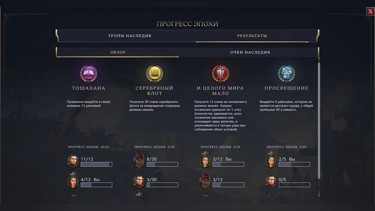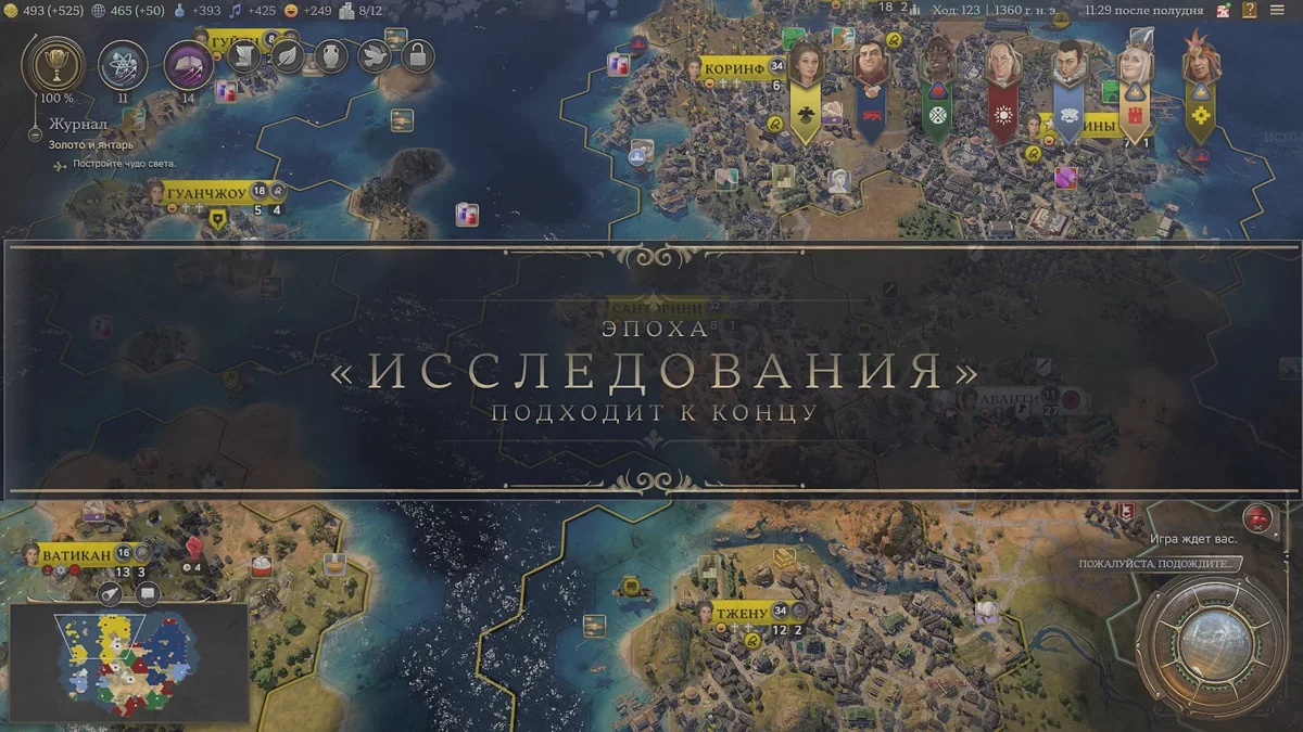У античности, эры исследований и современности свой фокус внимания. В одной имеет смысл опережающими темпами строить чудеса света, в другой — колонизировать другие материки, в третьей — копать артефакты с помощью исследователей. В зависимости от того, какой путь развития вам ближе, задачи будут разные. А от того, как вы с этими задачами справитесь, зависят начальные бонусы в следующей эпохе.