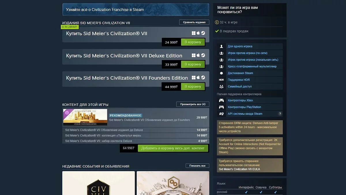 Для фанатов серии, да и индустрии в целом, релиз новой Civilization — всегда событие. Культовая стратегия никогда не жаловалась на недостаток внимания, поэтому на релизе Sid Meier's Civilization 7 с легкостью залетела в топ самых продаваемых в Steam. Только вот игроки остались недовольны: в день раннего запуска у нее было 39% положительных отзывов. Как говорится, а что случилось?