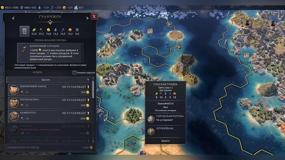 А еще при основании нового города, если речь не идет о столице, поселенцы теперь основывают «городок». Поселение с ограниченными возможностями, где все производство переводится в золото. Их можно превращать в города за деньги, чем выше население — тем дешевле. Свежая идея, их можно даже не улучшать, а держать в качестве денежных ферм. Но, опять же, на наш взгляд, Firaxis не совсем умело доводит этот новый концепт до игроков.
