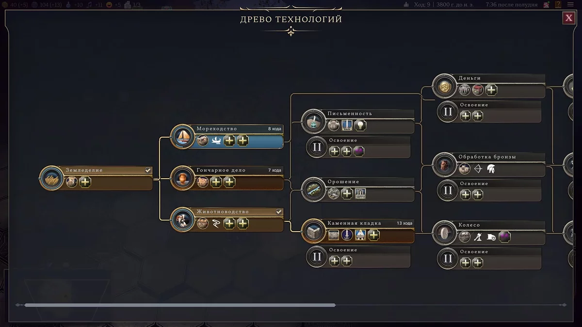 Вот и торговые пути теперь нужно запускать, чтобы импортировать в свою страну ресурсы другой цивилизации. Потому что чем больше ресурсов, тем лучше: они могут поднять настроение, производство, уровень пищи, культуры. Главное, чтобы в городах под них были ячейки.