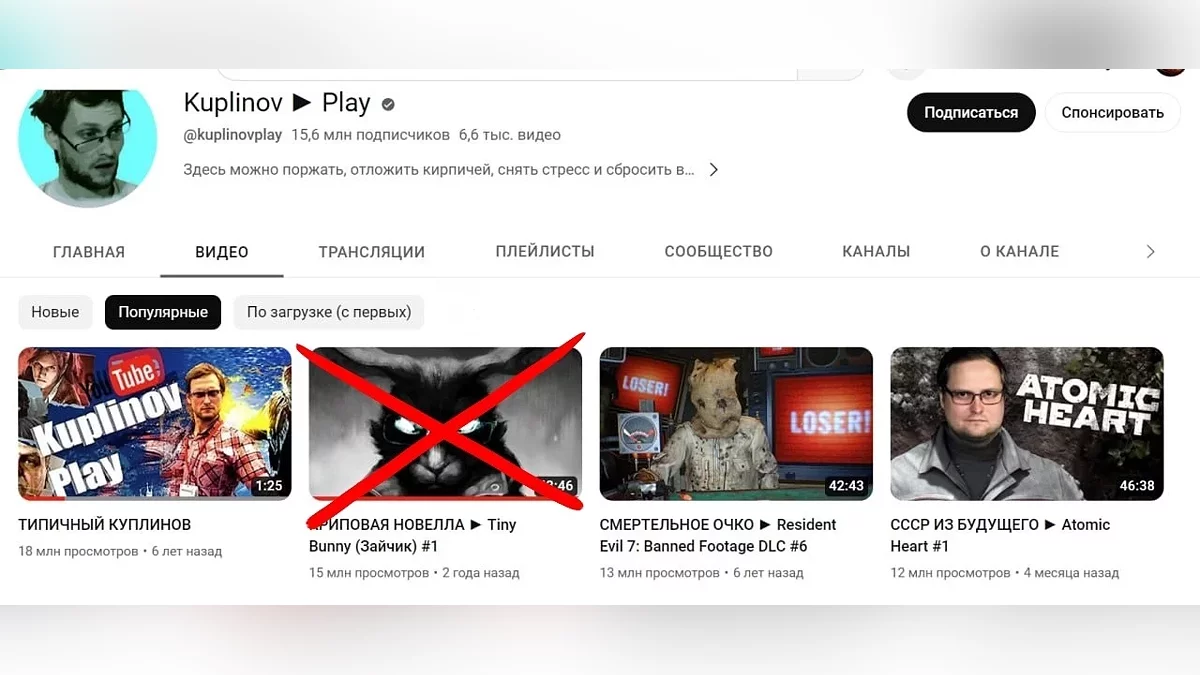 Известно, что есть пострадавшие помимо Куплинова. Страйки также получил популярный стример Александр «Булкин» Шабанов. Он стер с канала свое прохождение «Зайчика». Вероятно, есть и другие летсплееры.