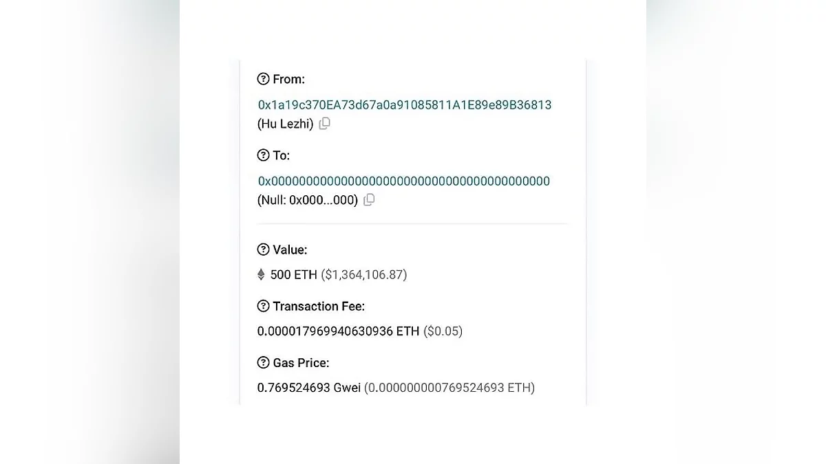 Неизвестный пользователь перевёл 591 ETH ($1.627.986) на адрес 0x0....000. Этот кошелёк не контролируется ни одним человеком или организацией, поэтому после транзакции никто не сможет вывести эти деньги. Иными словами, огромная сумма оказалась просто сожжена. Причём это далеко не единственный подобный случай. Были и другие переводы, например, в 130 ETH (363,6 тысяч долларов). Единственное объяснение таким действия — попытка людей привлечь к себе внимание. А раз мы об этом пишем, то они достигли своей цели.