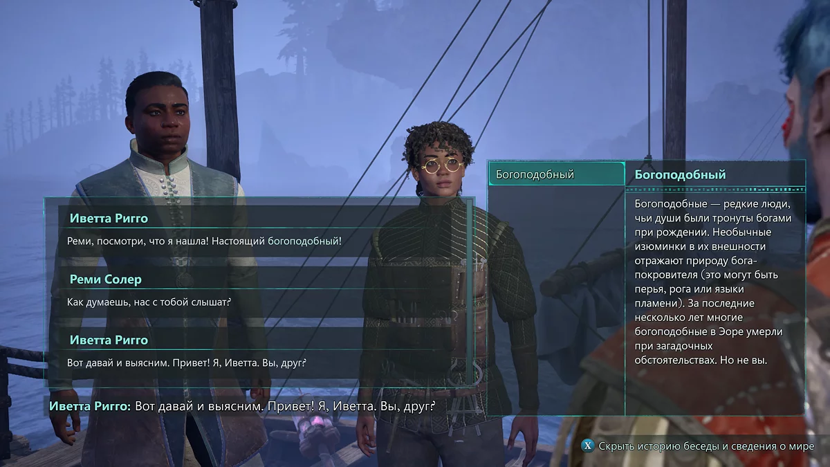 Если вы читали первую статью, то уже в курсе, что сюжет Avowed развивается в том же мире, что и Pillars of Eternity (другой хит Obsidian Entertainment). Впрочем, разработчики неоднократно заявляли, что знаний «Столпов вечности» не потребуется. Для старых фанатов будет несколько пасхалок, но не более того. В действительности всё немного иначе. Вас практически с порога начинают закидывать тонной терминов, названий, имён богов и прочей фэнтезийности, из-за которой мгновенно теряешься. Для любознательных в меню диалога есть специальная опция, позволяющая прочитать краткую справку о том или ином месте, названии или персоне. Иногда за одну беседу таких справок может потребоваться парочка, но чаще пять или даже шесть. При этом абсолютно все персонажи общаются с вашим протагонистом так, будто вы уже давно варитесь во всех нюансах этого мира, с полуслова понимаете отсылки и приколы.
