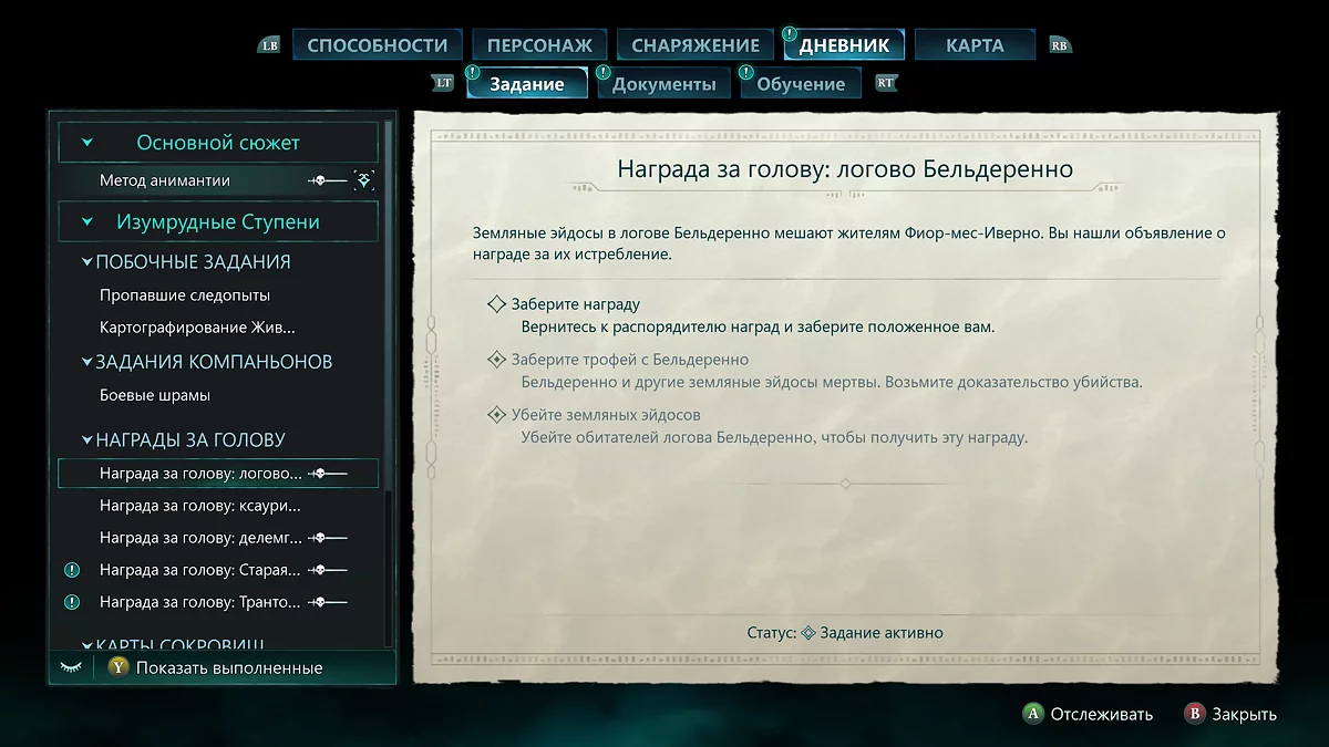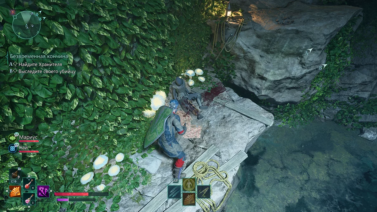Ну и парочка слов о прокачке. Она здесь не привязана к классу, поэтому вы вольны развивать любые навыки по трём стереотипным категориям — воин, следопыт и маг. Добрая половина скиллов — пассивки. Что до активных, то здесь похожая с оружием ситуация. Действительно полезных навыков крайне мало, зато если их прокачать до третьего максимального уровня, все остальные сразу оказываются бесполезными. У напарников тоже есть способности. Большинство из них атакующие, но для нас самыми полезными стали магическая лечилка и локатор, подсвечивающий ценный лут сквозь стрены. Остальное — опционально. Настраивать там нечего, нужно просто выбрать, какой навык будет сильнее остальных. Скиллы богоподобного появляются автоматически по сюжету. Из осколков воспоминаний также можно получить новые свойства богоподобного, однако там в основном пассивки.