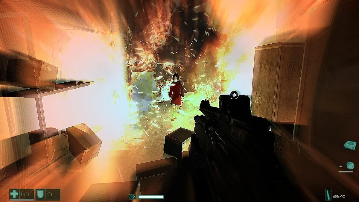 Во время перестрелок первая F.E.A.R. — это ураганный и крайне зрелищный шутер с умными врагами, мощными пушками, возможностью замедлять время и впечатляющими визуальными эффектами. Но стоит бойне утихнуть, как F.E.A.R. тут же превращается в жуткий хоррор, пугающий геймера странными видениями — например, внезапным появлением загадочной девочки-призрака. Игра постоянно меняется в тоне, однако делает это на удивление гармонично — нет ощущения, что ты играешь в два разных проекта, склеенных воедино.