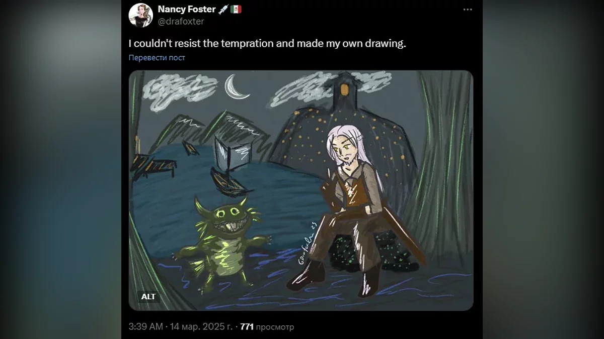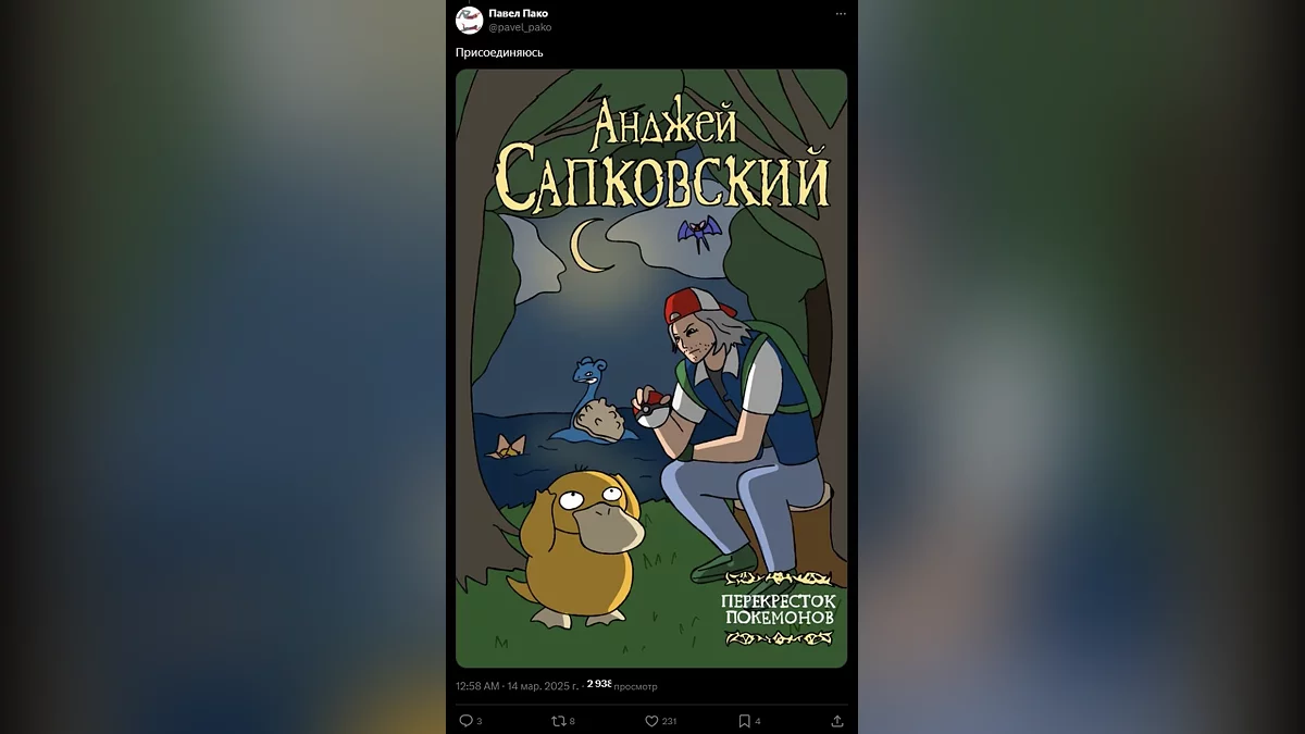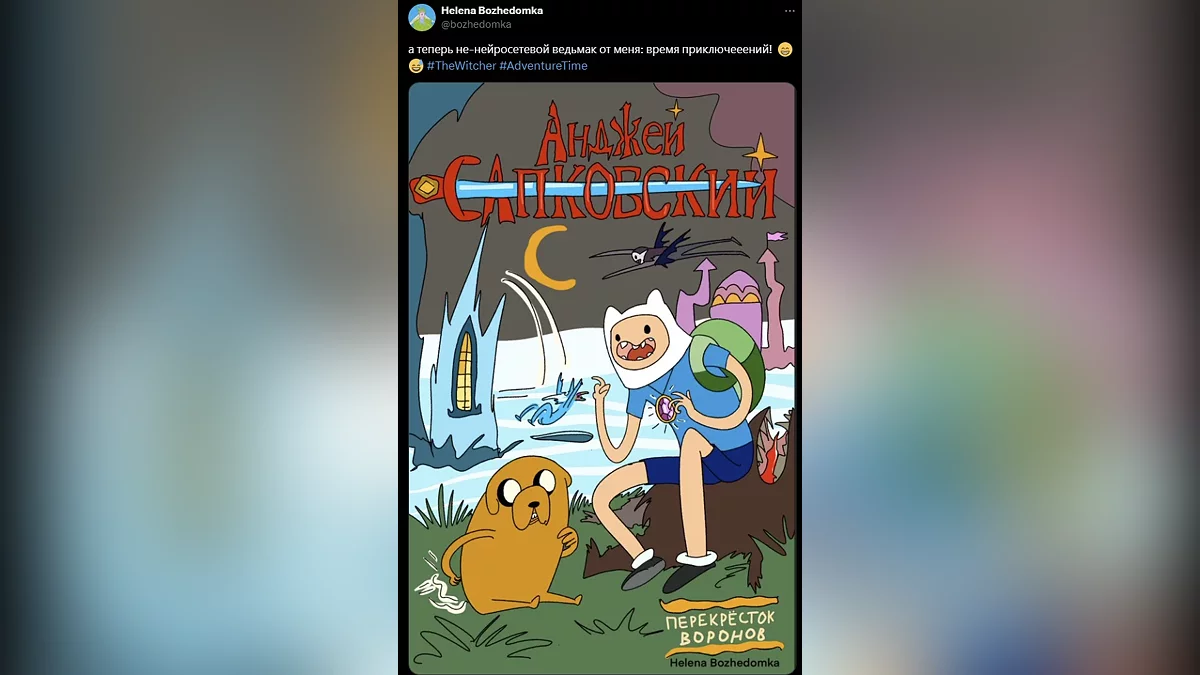 В результате русскоязычный X (Twitter) быстро заполнился десятками иллюстраций — от нарочито «всратых» до действительно качественных. Некоторые авторы вышли за рамки вселенной «Ведьмака» и устроили кроссоверы с «Временем приключений», «Человеком-бензопилой», «Покемонами» и не только.