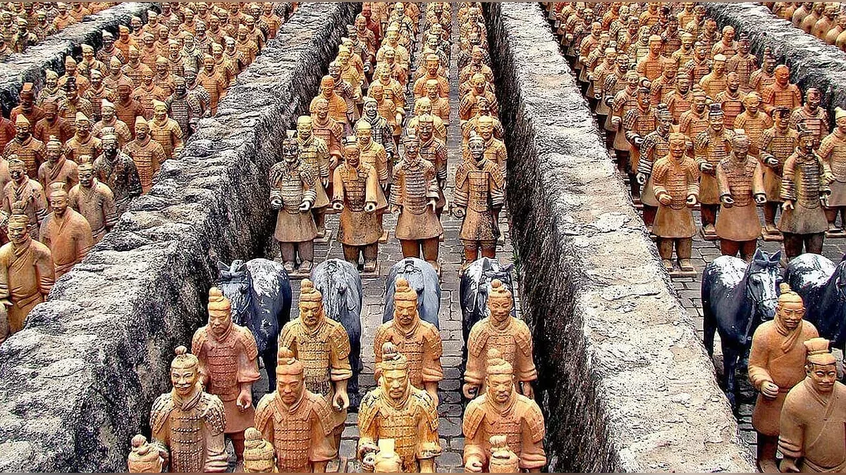 В 221 г. до н. э., после двухсотлетнего Периода Сражающихся царств, Китай был объединён в одно государство. Для достижения этой цели Ин Чжэн (Yíng Zhèng) использовал все методы, включая подкуп, шпионаж и жестокое истребление тех, кто пытался сопротивляться. Помимо этого будущий император Цинь Шихуанди (Qín Shǐ Huáng-dì) отомстил всем, кто обижал его раньше. Но даже после установления контроля над всем государством репрессии продолжились. Особенно не повезло тем, кто возражал правителю. Например, Ин Чжэн желал обрести бессмертие. А когда конфуцианские учёные заявили, что подобные стремления напоминают суеверия, их закопали в землю заживо. Именно на этот период пришлось активное строительство Великой Китайской стены и создание легендарной терракотовой армии.
