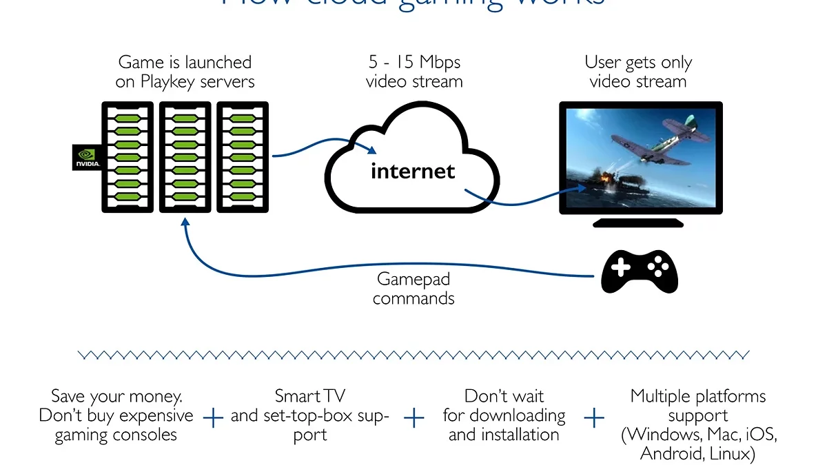 «Это возможность играть в современные требовательные игры на любом компьютере, даже слабом нетбуке или Макбуке 10-летней выдержки. Скачанные и установленные игры запускаются на сервере GeForce с мощными видеокартами и транслируются на ваш экран. С GeForce NOW можно забыть об обновлении железа и нехватке места на жестком диске».