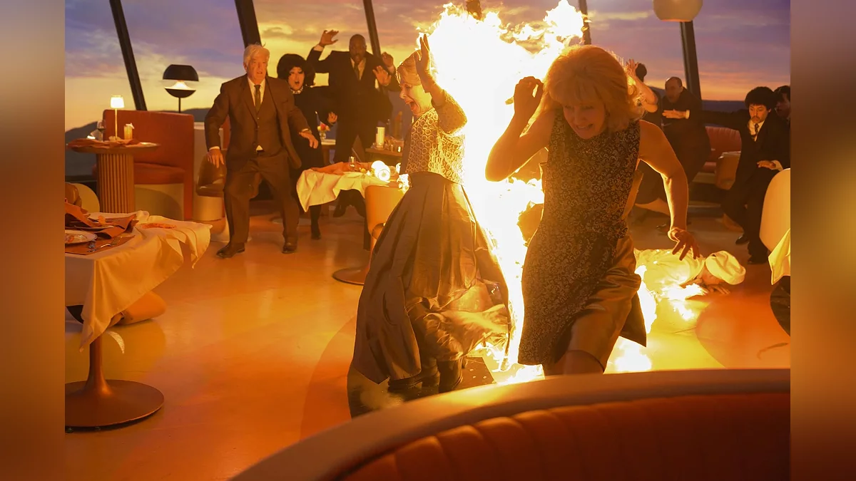 Есть ли что-то хорошее? Безусловно — открывающая сцена. Она отлично играет на самых распространённых фобиях, действительно впечатляет и даже развлекает. Стиль ретро добавляет серии новизны, а обстановка в ресторане — разрушающийся зал, хаос, паника, калейдоскоп страха и боли — сделаны с выдумкой. Жаль, что после неё фильм резко теряет масштаб и амбиции, превращаясь то в роуд-муви, то в квази-камерный боевик. При этом авторы почему-то продолжают возвращаться к этой вступительной сцене, повторяя её в разных ракурсах, будто пытаясь напомнить зрителю: «видите, у нас была одна удачная идея».