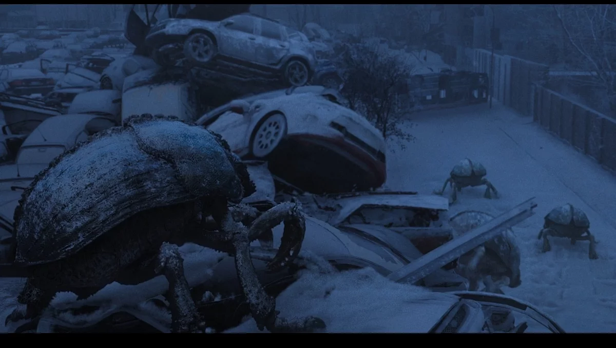 К середине сериала становится ясно: пока люди были в замешательстве и пытались выжить, на Землю высадились инопланетяне. Здесь они представлены жуками, которые нападают на людей, заматывают в коконы и уносят в норы. Только всё не так просто, как кажется на первый взгляд. Ведь жуки не едят людей. Они нужны им для более важных дел. И тут вспоминается фильм «Похитители тел». Потому что жуки лишь рабочие. А дальше снег заканчивается так же неожиданно, как появился, а попавшие в снег люди появляются на улицах.
