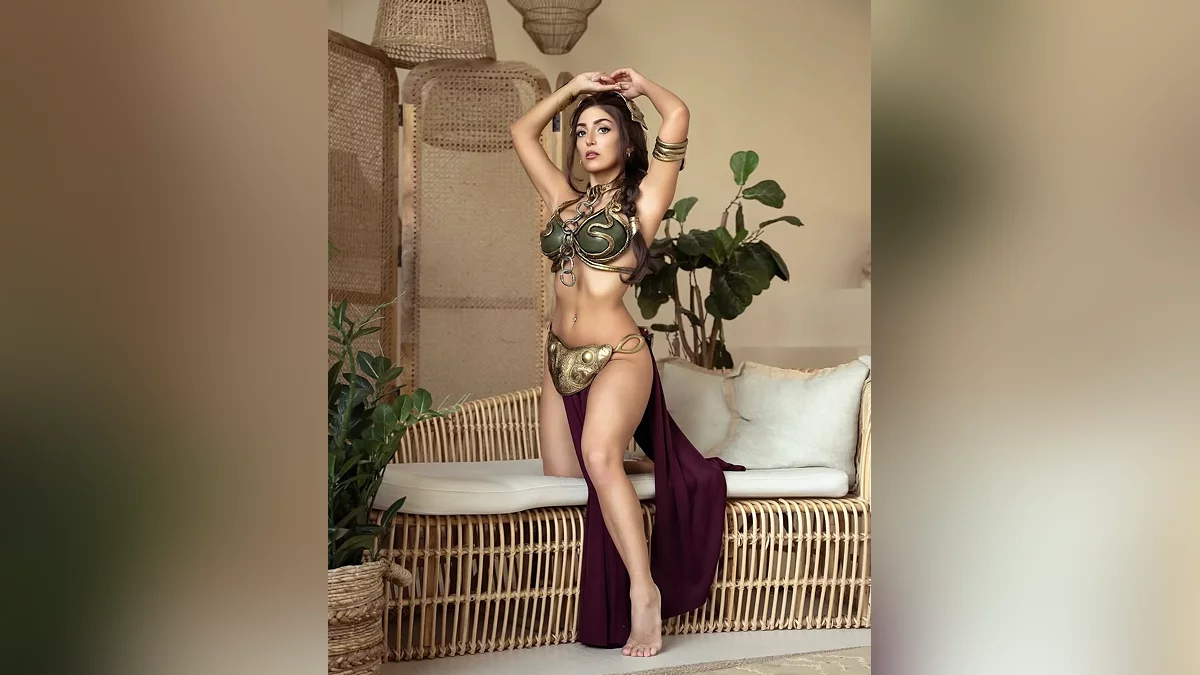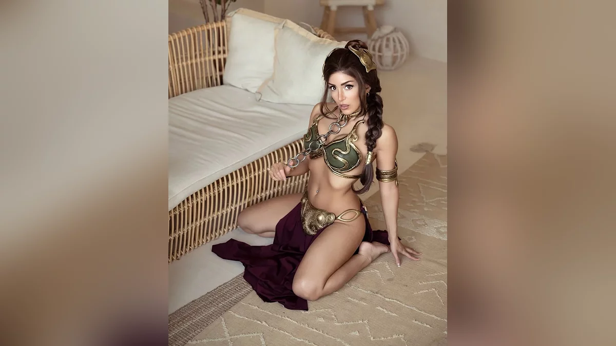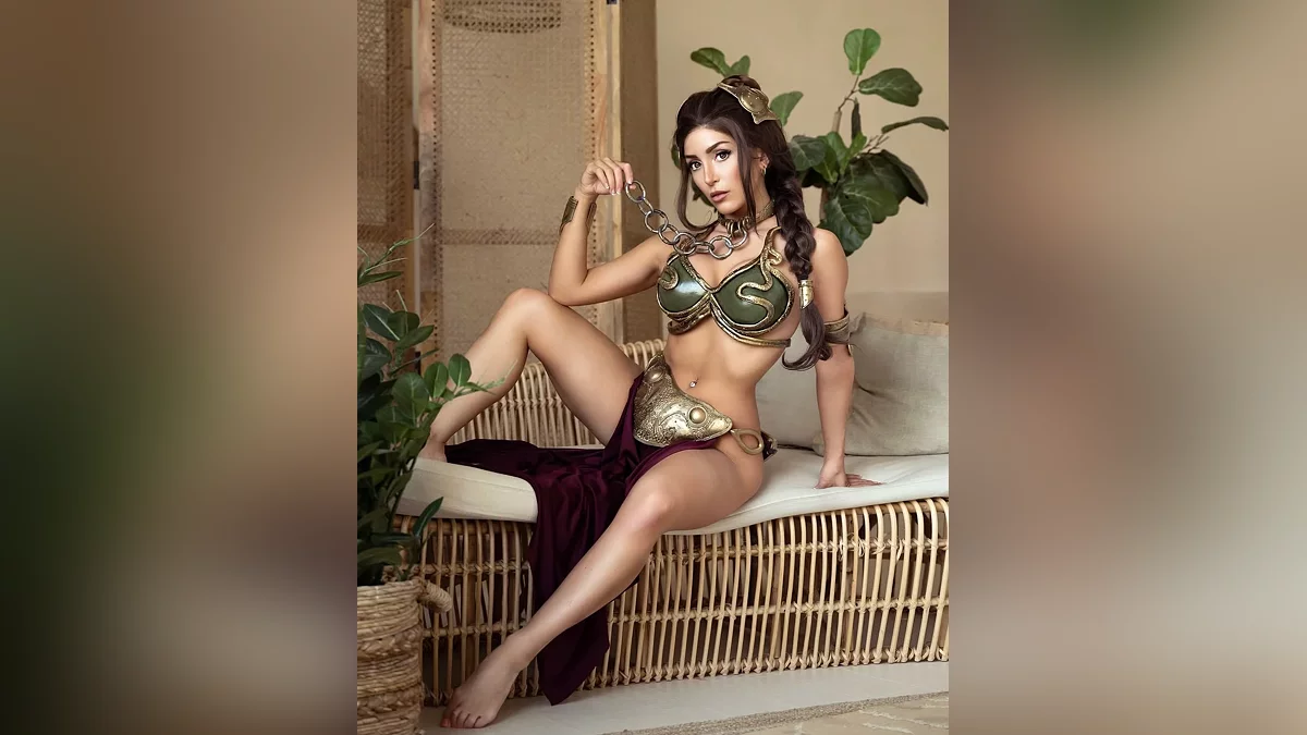 В шестом эпизоде «Звёздных войн» (Star Wars. Episode 6: Return of the Jedi) мы увидели Лею в золотом бикини. Столь откровенный костюм приятно порадовал зрителей, ведь раньше героиня носила исключительно бесформенные балахоны. Удивительно другое — принцессу в наряде рабыни вспоминают даже сегодня, хотя со времён выхода фильма прошло уже 42 года. В современных «Звёздных войнах» таких ярких образов уже нет. Косплей на Лею сделала Lisa Mancini.