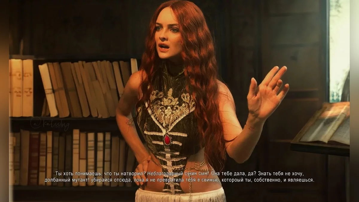 В самой первой игре серии «Ведьмак» (The Witcher) Трисс вела себя как Йеннифэр. Видимо, девушка хотела завоевать сердце Геральта, пока черноволосая чародейка находилась в Нильфгаарде. И у неё это получилось, пусть и на некоторое время. Позже рыжеволосая красавица открыто признавалась Белому волку, что воспользовалась его провалами в памяти. Отметим, что прямо сейчас ведётся разработка полноценного ремейка оригинального «Ведьмака» 2007 года. Косплей на Трисс сделала Katssby.