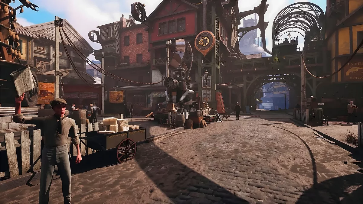 Повсюду мы видим добротные широкие улицы с красивыми фасадами и рекламой, увешанные паровыми трубами, подвесными монорельсами и другими механизмами, характерными для такого жанра, как стимпанк. Авторы игры активно применяют стимпанк-образы в одежде, городской инфраструктуре и дизайне интерьеров.