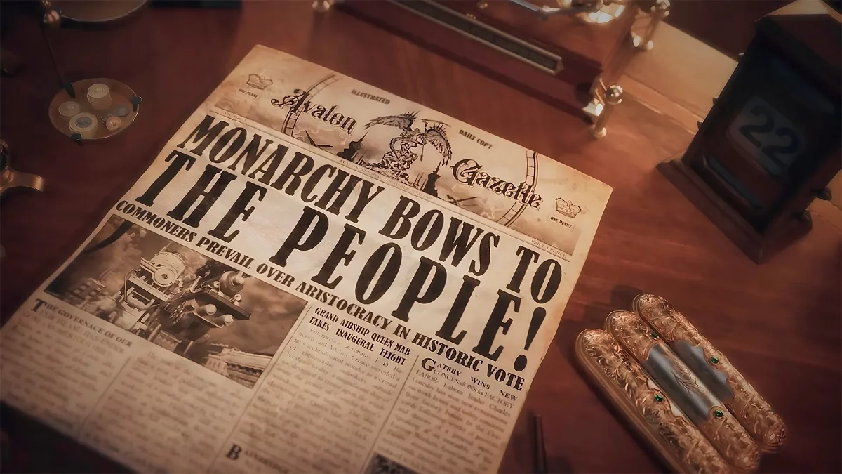 Трейлер открывается постером мегаполиса Авалон, где разворачивается действие игры. «Новая утопия» (A New Utopia) — гласит девиз города. Ролик сразу задает атмосферу эпохи: 1895 год, промышленная революция отгремела, наступила эра стимпанка, но в этих краях она не привела к смене общественно-политической формации. О том, что новая игра будет эксплуатировать тему революций, говорит не только слово Revolution в названии, но и недовольный голос главного героя.