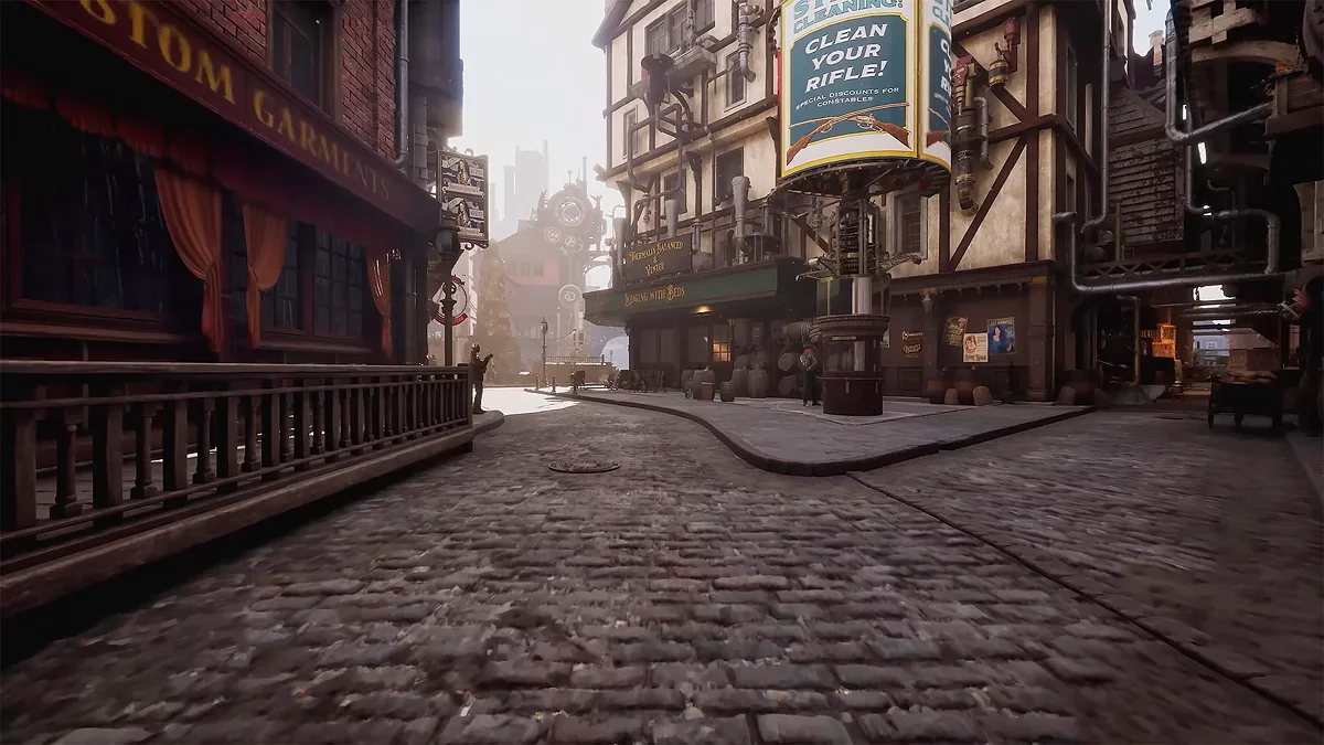 Далее разработчики переносят нас на улицы города. По ощущениям, при создании окружения и уровней авторы вдохновлялись старыми улицами Нью-Йорка и Лондона, а не исторически достоверными фотографиями прошлого — город Авалон выглядит не так старо, как ожидаешь от конца 19 века.