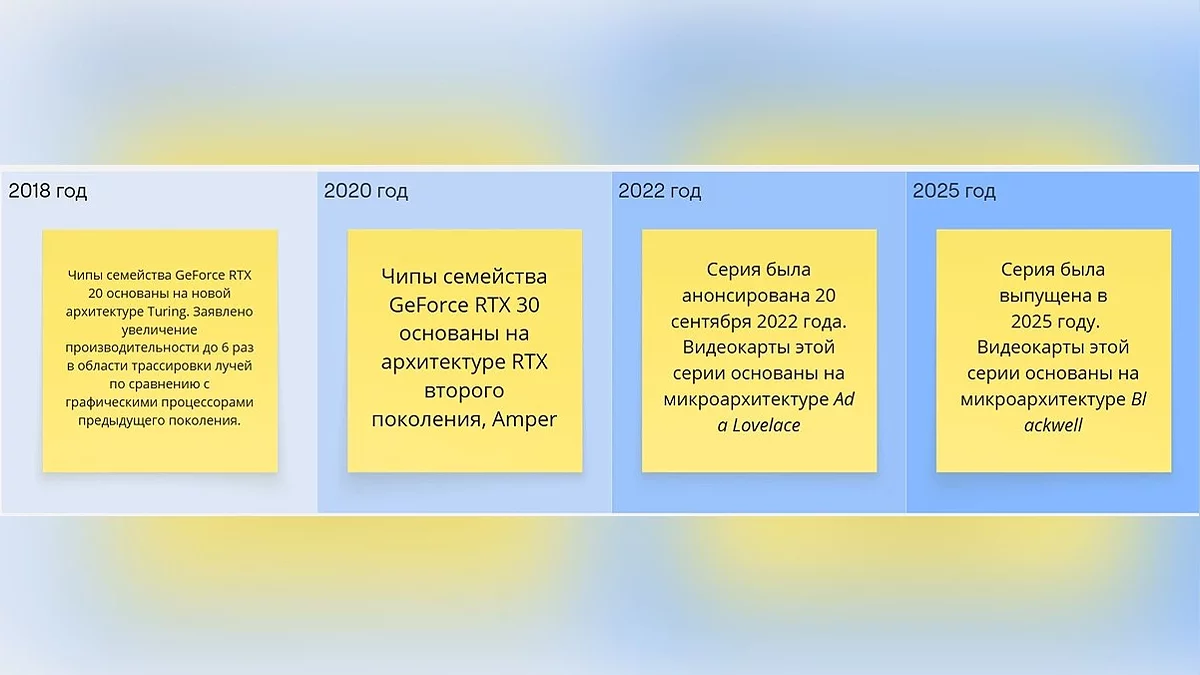 Для полного понимания картины давайте взглянем на общие тенденции рынка комплектующих для ПК. Рассмотрим видеокарты, так как это самая быстроразвивающаяся отрасль с частыми новинками, и именно устаревание карточки часто служит поводом для апгрейда. Итак, ситуация на рынке видеокарт: дядя Хуанг (Nvidia) буквально совершает скачок производительности каждые 2 года, как по расписанию:
