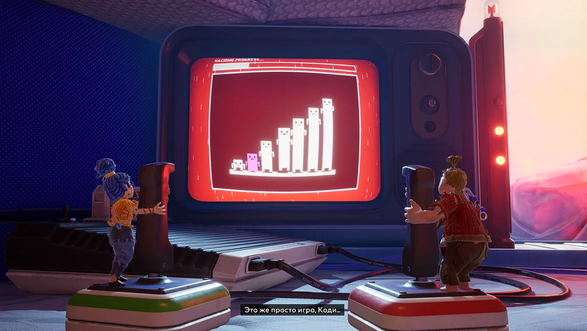 Выбор пал на It Takes Two, игру шведской компании Hazelight Studios. Выйдя еще в 2021 году, она поначалу притворялась сказкой, а на деле оказалась чем-то вроде парной терапии, завернутой в обёртку кооперативного платформера.