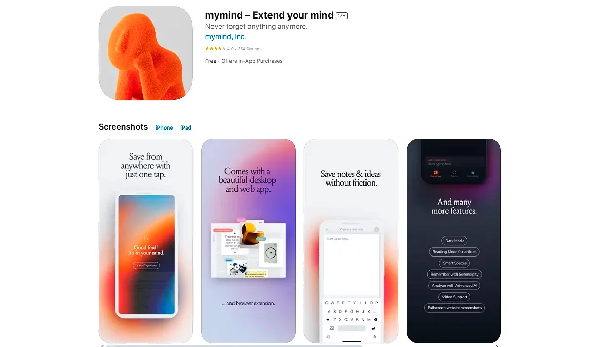 Приложение для организации заметок, записи идей, хранения ссылок и другого контента. Есть встроенный ИИ-поиск, который упрощает навигацию. Работает как «внешняя память» для пользователя, позволяя сохранять нужные записи и информацию на потом.