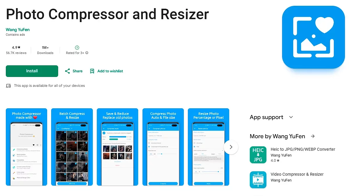 Для тех, кому приходится постоянно очищать «Галерею», чтобы освободить память. Быстро уменьшает размер и разрешение фотографий с минимальными потерями качества. Поддерживает пакетную обработку изображений, отлично подходит для экономии места на устройстве и лёгкой отправки картинок по сети.