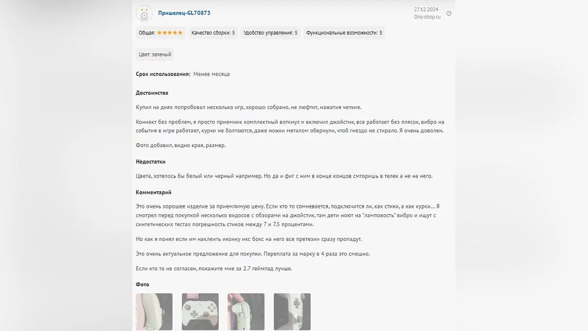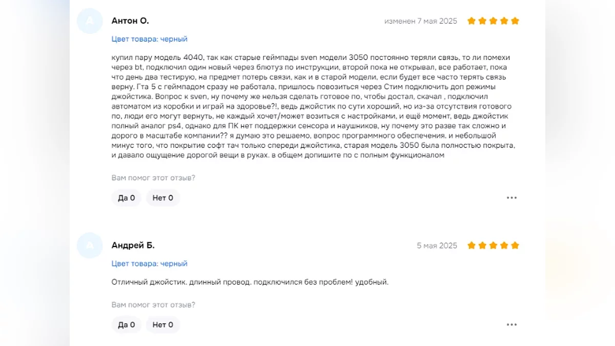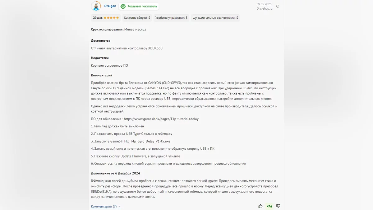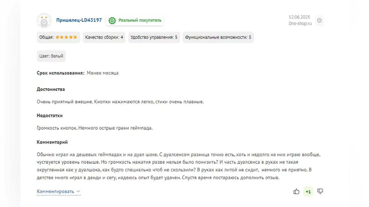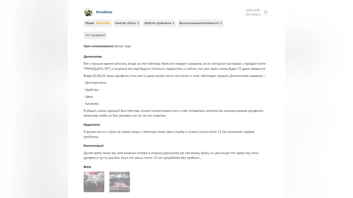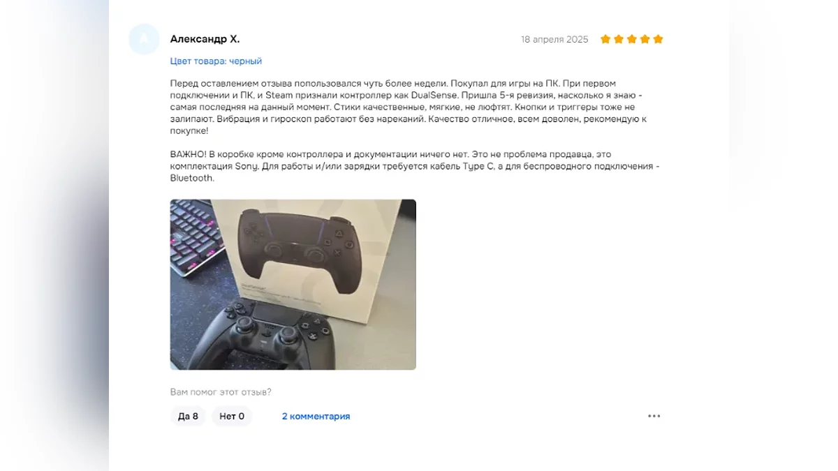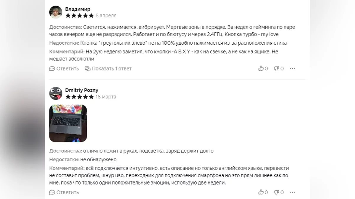 - Средние «мертвые зоны» стиков. Показатели 10–12% — не критично, но хуже, чем у топовых моделей.