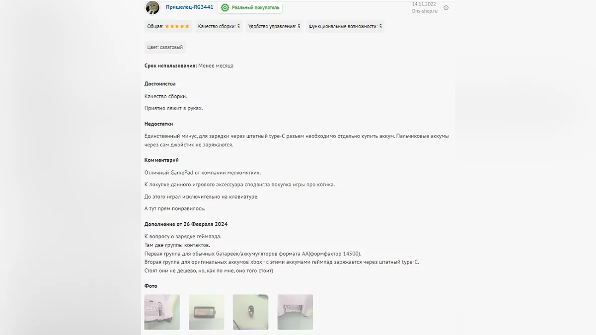 - Зависимость от батареек. Геймпад работает от двух батареек AA, которые не заряжаются через USB-кабель и требуют регулярной замены или покупки аккумуляторов.