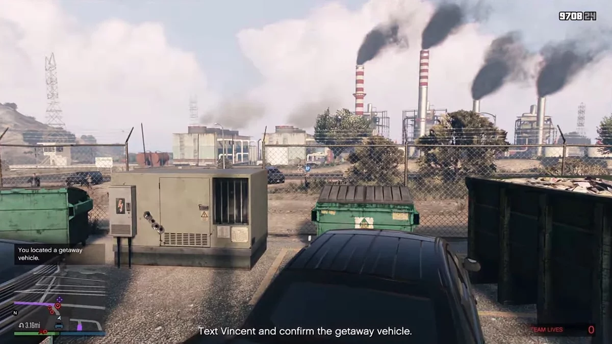 Но извините, Rockstar придумали по-другому. С началом миссии бластер у игрока из инвентаря пропадает. Столкнуть мусорный бак машиной и уехать тоже не получится — Rockstar конкретно для этой миссии прикрутили мусорные баки к асфальту. Гейм-дизайнер, который меняет правила на ходу и делает это таким грубым и способом это не очень хороший гейм-дизайнер.