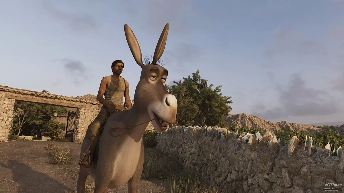 Забавный мод, который меняет всех коней в игре на Осла из «Шрека» (Shrek). Нам обещают сольный мультфильм про этого скакуна, но выйдет он не раньше 2027 года.