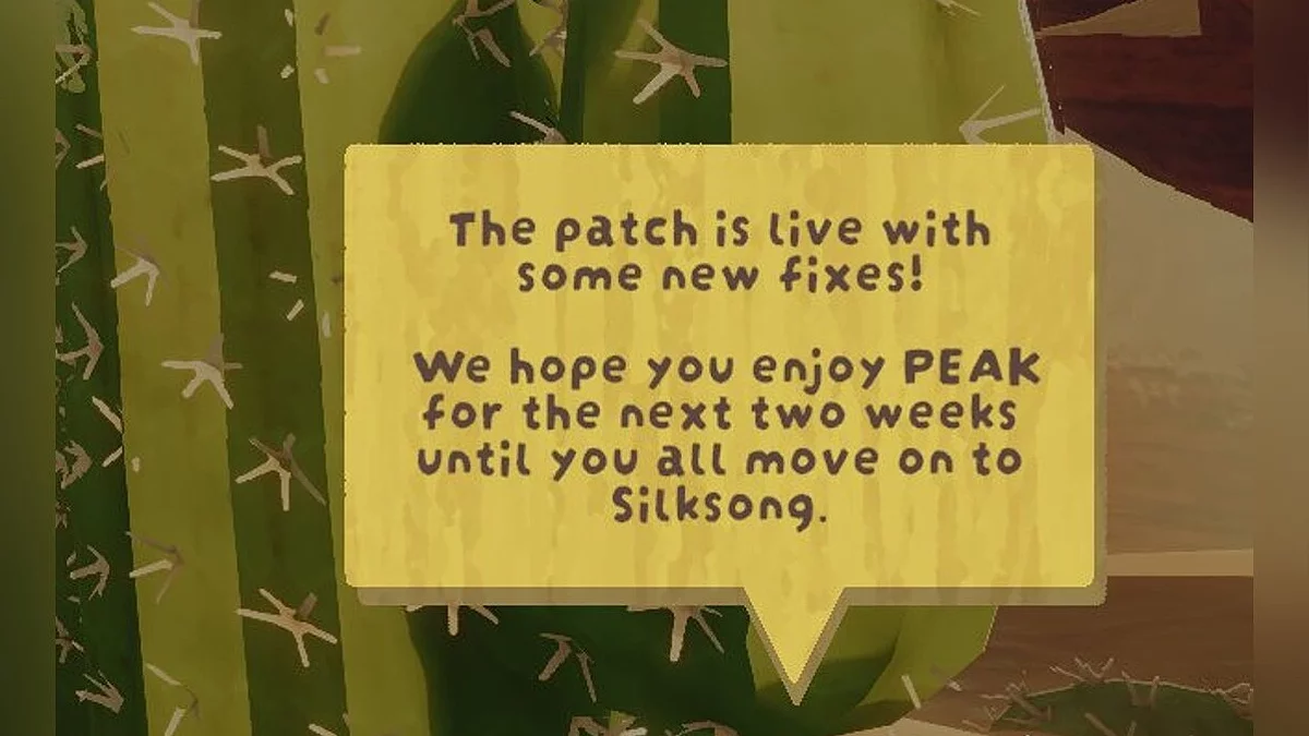 Известно о реакции команды Mesa (разработчики популярного Steam-хита Peak), которые в патче с исправлениями добавили сообщение о том, что понимают — игроки, вероятно, сделают перерыв в игре на время выхода Hollow Knight: Silksong.