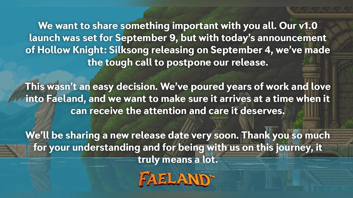 Это было непростое решение. Мы вложили годы труда и любви в создание Faeland и хотим быть уверенными, что он появится в то время, когда сможет получить то внимание и заботу, которых заслуживает.