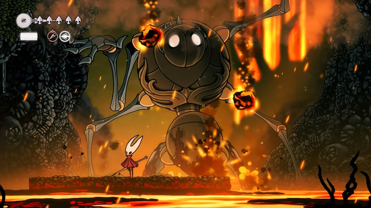 Первую Hollow Knight лёгкой прогулкой не назовёшь, это правда, однако и брутальной тоже нет. Во второй половине игры хватает агрессивных боссов и хитроумного платформинга, но в целом у неё прямая кривая сложности: в начале Hollow Knight простая, но чем дальше продвигается геймер, тем больше испытаний она подкидывает.