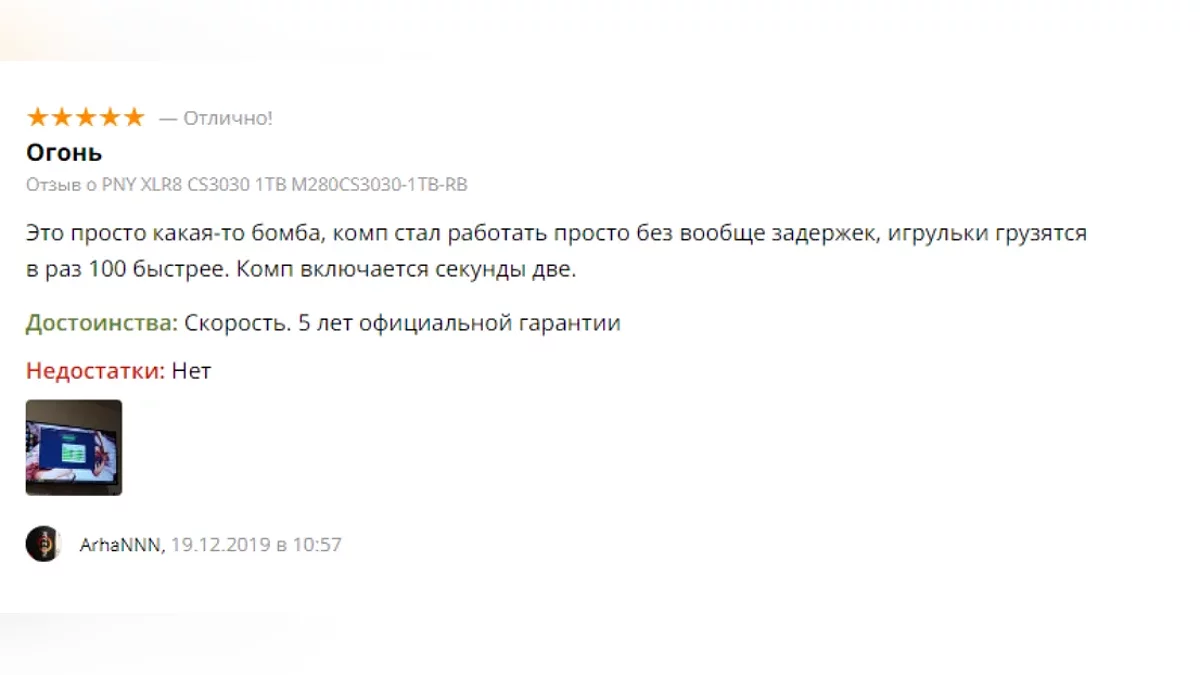 - Отличная цена за NVMe-накопитель. По стоимости близок к SATA SSD, но при этом в разы быстрее;