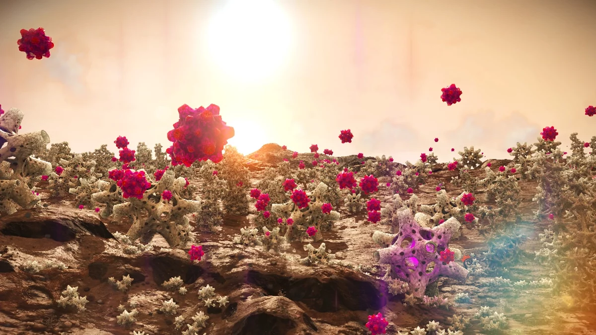 Первое и, на мой взгляд, главное — исследование планет. В самом начале протагонист появляется на планете, плохо понимая, где он и кто он, бежит искать свой поврежденный звездолет, чтобы начать свой путь к космическому величию. Планеты на первый взгляд отличаются чрезвычайным разнообразием — от пустых безжизненных каменистых лун без атмосферы до райских планет с богатой флорой, фауной и минеральным составом. На планетах очень часто присутствуют водные пространства, от небольших лужиц до огромных океанов, покрывающих всю поверхность планеты, как в какой-то Subnautica. Под водой — такой же богатый мир, в котором можно жить, строить и исследовать. Строительство баз — вообще одна из ключевых возможностей игры, здесь фантазия игроков зачастую не знает границ. В одном из апдейтов игры разработчики предоставили возможность находить и брать под свое крыло поселения, которые также можно обустраивать и получать с них в перспективе некоторые ресурсы.