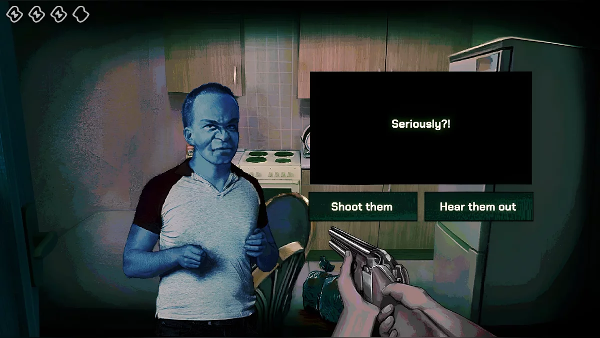 Пускать всех подряд или, наоборот, выгонять их — сомнительная идея, ведь такой подход гарантированно приведёт к плохой концовке. Но даже если вы случайно пропустили монстра — ещё не всё потеряно. Вы можете устроить допрос прямо у себя дома, внимательно осмотреть его и при необходимости вышибить подозреваемому мозги из ружья. Отметим, что выживших периодически будут забирать представители закона для дополнительных проверок.